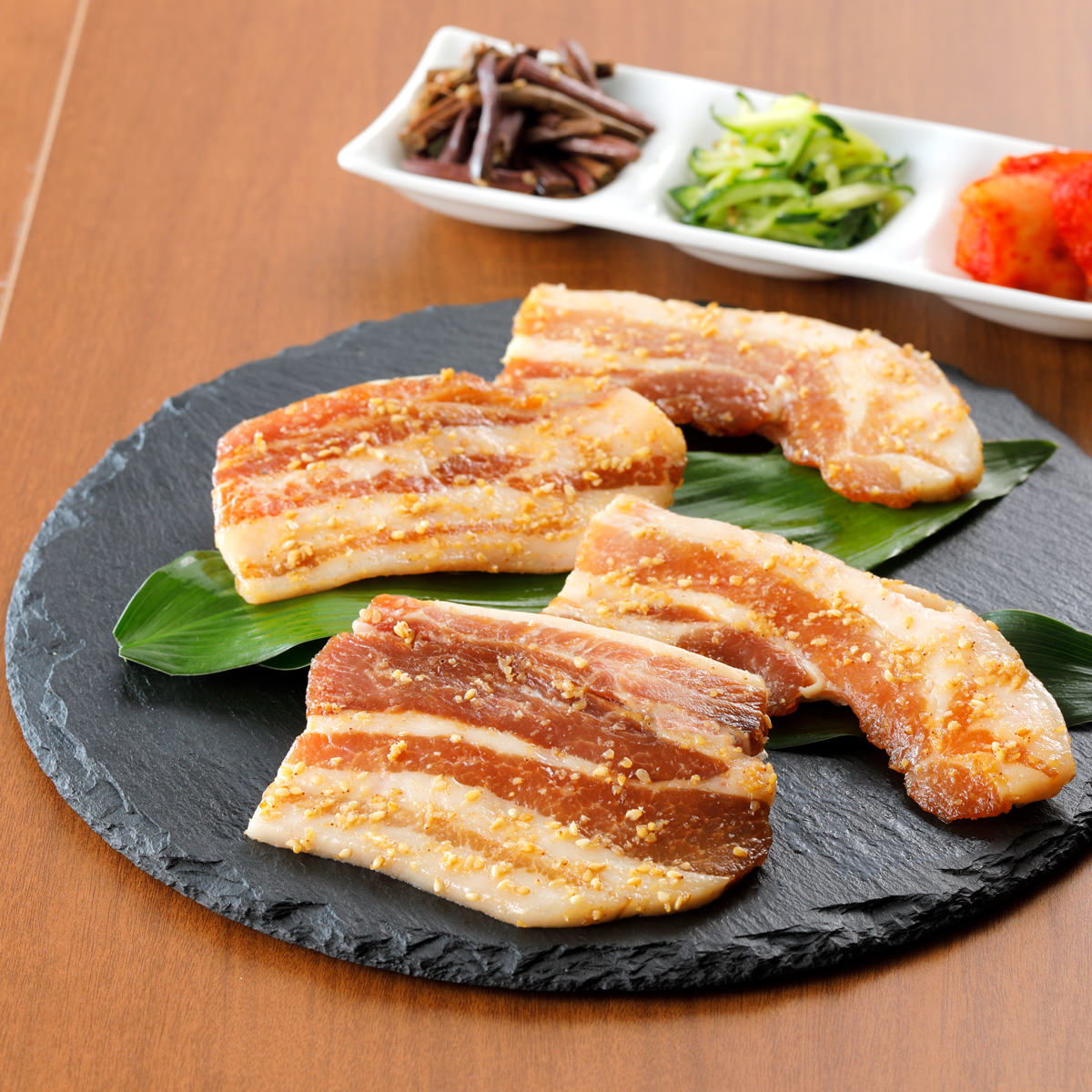 商品情報 商品名 皮付豚 バラ ブロック 名称 豚肉加工品(皮付き豚バラ肉・冷凍食肉) 内容量 800g 原産国 オーストリア又はデンマーク又はスペイン又はメキシコ 原材料 豚肉 賞味期限 別途商品ラベルに記載 保存方法 要冷凍-18℃以下 加工者 株式会社ウイングフード 愛知県清須市朝日弥生89 販売者 ティーエムジーインターナショナル(株)名古屋市南区丹後通4-8-1 TEL:052-618-3705 配送形態 冷凍 *仕入や在庫状況によりパッケージ、規格などが多少違う場合がございます *内容量については個体差がありますので予めご了承ください 本商品に含まれるアレルギー物質(特定原材料7品目) 卵乳小麦落花生そばえびかに - - - - - - - 「○」のついているものは含まれます。 商品説明 とろとろのプリプリ、皮付きにしかない食感をお楽しみください! 皮付きの豚ばら肉のかたまり。 皮と肉と脂肪が交互に五層になっているので五枚肉とも言います。 沖縄料理のラフテーの材料としても有名ですが、ラフテーはこちらのように皮が付いてなくては本場の味は出せません! その他、韓国料理(オギョプサル 等)、中華料理、フィリピン料理等にも欠かせない食材です! ※皮の表面に、検査をパスした証となる判が押されていることがありますが、食用カラーを使用しておりますので、そのままお召し上がりいただけます。 ※皮つき豚バラは丸々1本で4-5kgある部位でございますが、豚の頭の方からしっぽにかけて脂身が少なくなり薄くなり、その分800g前後に切る幅は広くなります。 厚みや幅等はご選択いただけません事、どうか予めご了承くださいませ。 ※脂身の厚みは個体差がございますので、赤身との比率につきましては脂身の多いものもございますが何卒ご理解の上、ご容赦の程よろしくお願いいたします。 召し上がり方 お肉にミートガイオリジナルタコチリスパイスミックスをまぶして焼けばメキシカンな皮パリパリのローストポークが作れます! レシピ かたまり肉でローストポークはいかがでしょうか?器具ごとのレシピを紹介 フライパンで作るローストポーク オーブンで作るローストポーク 炊飯器で作るローストポーク ローストポークのソース作り 解凍方法 ▼氷水解凍 手間と時間がかかりますが、オススメな解凍方法! 水漏れしないよう2重にビニール袋に入れた後、氷水に浸し、さらに完全に解凍するまで適宜氷を追加してください。 1kgあたり3?4時間が目安です(※)。 美味しく解凍する為のポイントは、お肉の表面温度を低く保ちながらの最短解凍です!マイナス2℃程度ですと、解凍後のお肉の状態もよくなります。 ▼冷蔵庫内での自然解凍 多少時間がかかりますが、こちらも旨みと品質を保ちながら解凍できる方法です。 溶け出てくる血やお肉汁が他の食品に付かないよう、2重にビニール袋に入れるか、または容器に入れて解凍してください。 時間の目安は1kgあたり約24時間です(※)。 冷凍お肉の外側と中心部の温度差が少ない状態で解凍されてゆくのでお肉の旨み成分であるお肉汁の流出を最小限に抑えることができます。 ▼流水解凍 急いでいるならこちらの方法。 ボウルやタライにビニール袋に入れたお肉を置き、水を流し続けながら解凍します。 この時、袋の口が水に浸らないように注意しましょう。 厚さ1cmほどのお肉であれば約30分で解凍できます(※)。 ただし、急速に解凍するのでドリップの量が多く、水も大量に使わなければなりません。 お肉の美味しさも先に紹介した方法よりは逃げてしまうので、急ぎの時だけ行うようにしてください。 ※ あくまで目安ですので、商品の種類、パッケージ状況によってはかなりの差が出ます。 ≫ 冷凍肉の解凍方法を詳しく お客様の声 南アフリカ出身、千葉県在住 R.W.さん In over 20 years here in Japan amongst my biggest frustrations was being unable to locate good cuts of lamb, pork with skin, sausage skins etc. Finding your site - and, hey, Boerewors! - it's beyond my wildest dreams. Thanks and more power to you. 【訳文】20年以上日本に住んでいて、一番欲求不満に感じていた事 ? それは美味しい部分のラムや皮付きのポーク、ソーセージスキンなどが手に入らなかったという事。 TheMeatGuyのサイト(母国のBoereworsソーセージまでが手に入る店)を見付けられた事...それはまさに叶わぬと思った夢が叶った瞬間! ありがとう、そしてこれからもがんばって! 皮付き 豚バラ肉 ブロック 800g 五枚肉 豚肉ばら ラフテーやローストにどうぞ! -P114 2,630 ~