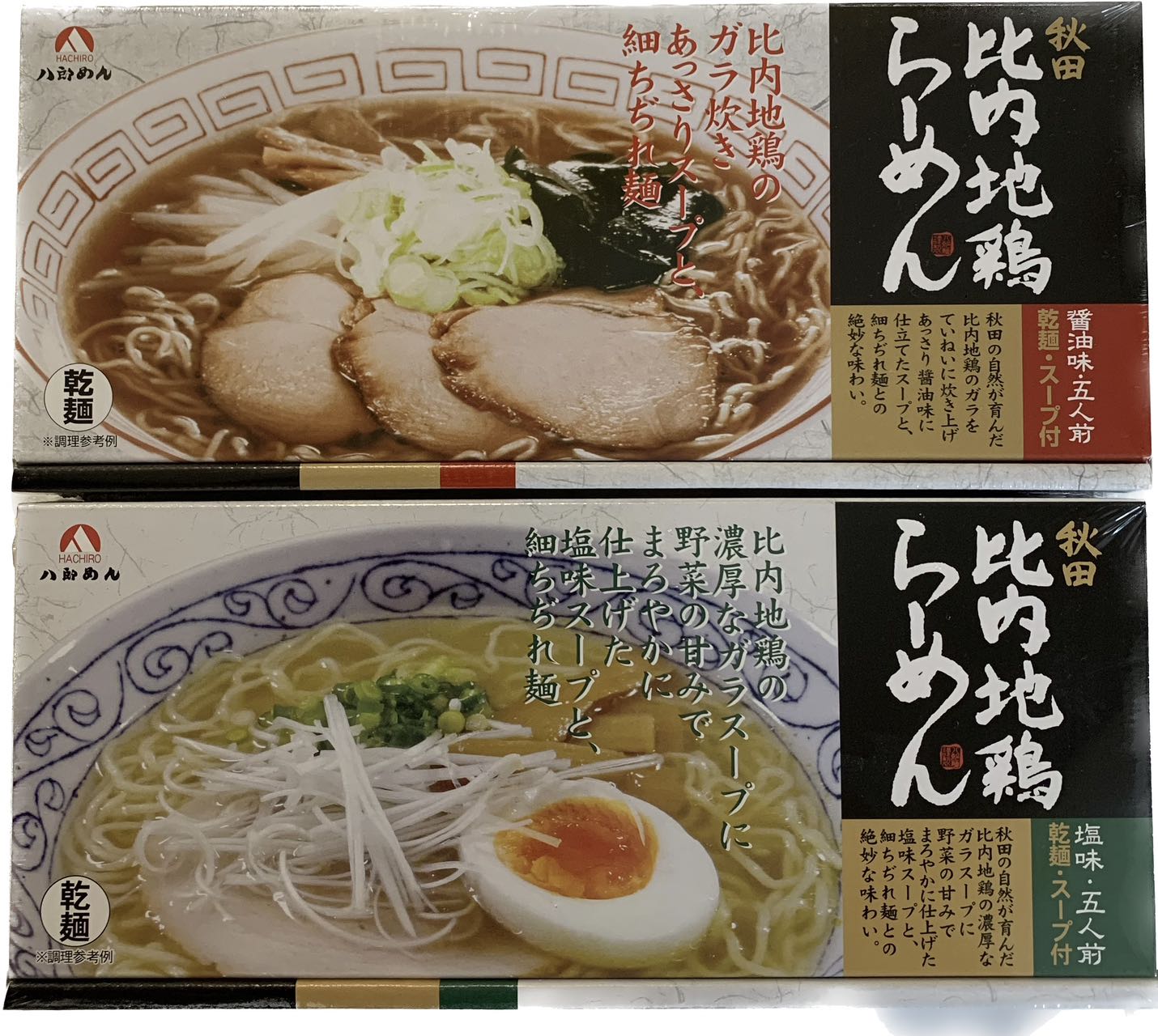 八郎めん 乾燥めん・秋田らーめん 比内地鶏ラーメン塩味 5食入り 醤油味 5食入り 各1箱 計2箱 お徳用 ラーメン組み合わせ 即席中華めん 3,080 ~