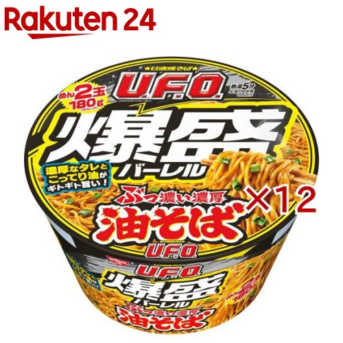 お店TOP>フード>加工食品・惣菜>インスタント食品>カップ麺>日清焼そばU.F.O.爆盛バーレル 油そば (6食入×2セット(1食212g))【日清焼そばU.F.O.爆盛バーレル 油そばの商品詳細】●めん2玉(180g)で規格外の食べ応え!醤油味の濃厚なタレとこってり油がギトギト旨い!●カップ麺は簡便調理で袋麺(袋めん)と一緒にストックしておくと便利!●旅行、おうち時間、巣ごもり消費、お手軽昼食、おやつ、夜食などにあると便利。 インスタントスープ・お味噌汁の代わりにも。 ●洗い物いらずで時短。 日清食品。 箱買い。 【召し上がり方】(1)フタを一部はがし、液体だれを取り出し、熱湯を内側の線まで注ぎ、フタをして5分待つ。 (2)湯切り口を作り、カップをしっかり持ち、静かに傾け、湯切り口から湯をすてる。 (3)液体だれをかけてよくまぜ合わせてできあがり。 【品名・名称】即席カップめん【日清焼そばU.F.O.爆盛バーレル 油そばの原材料】油揚げめん(小麦粉(国内製造)、植物油脂、食塩、大豆食物繊維、ガーリック調味料、卵粉)、たれ(豚脂、しょうゆ、糖類、食塩、しょうが調味油、ガーリック調味料、醸造酢、香味油、たん白加水分解物、酵母エキス、ポーク調味料、香辛料、こしょう調味料)、かやく(ねぎ)/加工でん粉、調味料(アミノ酸等)、炭酸Ca、香料、かんすい、カラメル色素、増粘多糖類、酸味料、酸化防止剤(ビタミンE)、乳化剤、カロチノイド色素、香辛料抽出物、ビタミンB2、ビタミンB1、(一部に小麦・卵・乳成分・さば・大豆・鶏肉・豚肉・ゼラチンを含む)【栄養成分】1食(212g)当たりエネルギー:964kcal、たんぱく質:16.2g、脂質:41.9g、炭水化物:130.5g、食塩相当量:10.1g、ビタミンB1:1.01mg、ビタミンB2:1.8mg、カルシウム:372mg【アレルギー物質】小麦、卵、乳、さば、大豆、鶏肉、豚肉、ゼラチン【保存方法】においが強いもののそばや直射日光を避け、常温で保存してください【注意事項】・やけどにご注意ください。 【原産国】日本【ブランド】日清焼そばU.F.O.【発売元、製造元、輸入元又は販売元】日清食品※説明文は単品の内容です。 リニューアルに伴い、パッケージ・内容等予告なく変更する場合がございます。 予めご了承ください。 ・単品JAN:4902105292679日清食品160-8524 東京都新宿区新宿6-28-10120-923-301広告文責:楽天グループ株式会社電話:050-5577-5043[麺類/ブランド:日清焼そばU.F.O./] 日清焼そばU.F.O.爆盛バーレル 油そば(6食入×2セット(1食212g))【日清焼そばU.F.O.】 3,980 ~