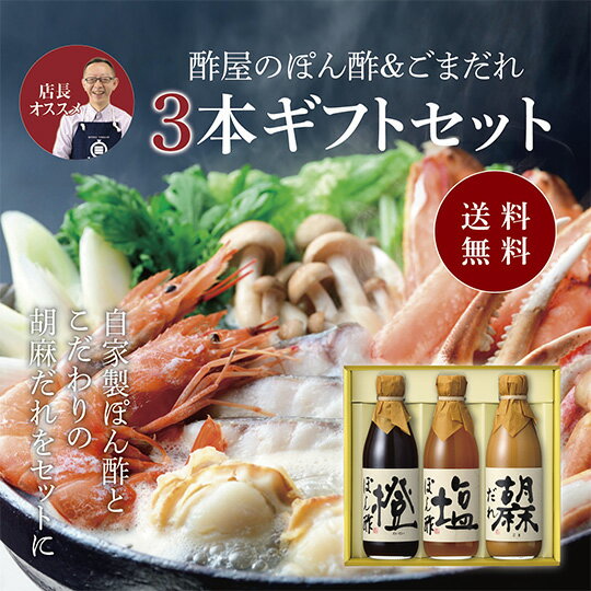 ぽん酢 ポン酢 無添加 化学調味料無添加 化学調味料不使用 ぽん酢詰合せ ポン酢詰合せ ぽん酢ギフトセット ポン酢ギフトセット 母の日 健康ギフト 母の日ギフト 母の日プレゼント 義母 誕生日プレゼント お歳暮 お中元 誕生日 ギフト プレゼント 健康ギフト 内祝 お返し 内祝い 出産内祝 出産内祝い 御祝 父の日 義父 敬老の日 【商品情報】 名称 ぽん酢・ごまだれ 内容量 360ml×3本 原材料 【橙ぽん酢】しょうゆ(国内製造)、柑橘果汁(だいだい、ゆず、ゆこう)、米酢、みりん、砂糖、食塩、削りぶし(そうだかつお、かつお)、かつお節エキス、こんぶエキス、しいたけエキス、酵母エキス、(一部に小麦・大豆を含む) 【塩ぽん酢】柑橘果汁(だいだい、ゆず、ゆこう)、米酢(愛知県製造)、みりん、食塩、砂糖、酵母エキス、かつお節エキス、こんぶエキス、削りぶし(そうだかつお、かつお) 【胡麻だれ】ねりごま(国内製造)、糖類(水あめ、ぶどう糖)、みりん、たん白加水分解物、醸造酢、ごま油、しょうゆ、かつお節エキス、食塩、食物繊維、こんぶエキス、酵母エキス、でん粉、(一部に小麦・大豆・ごま・オレンジを含む) 賞味期限 製造後1年間 保存方法 開封前:常温で保存できます。 陽の当たる場所は避けてください。 開封後:冷蔵庫で保管してください。 ※保存料を使っていません。 開封後は必ず冷蔵庫に入れて、賞味期限に関わらずお早めにお使いください。 製造者 株式会社 三井酢店 愛知県知多郡阿久比町 卯坂字下同志鐘1-10 送料無料 ※北海道・沖縄・離島除く酢屋のぽん酢&ごまだれ 3本ギフトセットお歳暮 健康 ギフト プレゼント 誕生日プレゼント 内祝 お返し 内祝い 出産内祝 3,240 ~