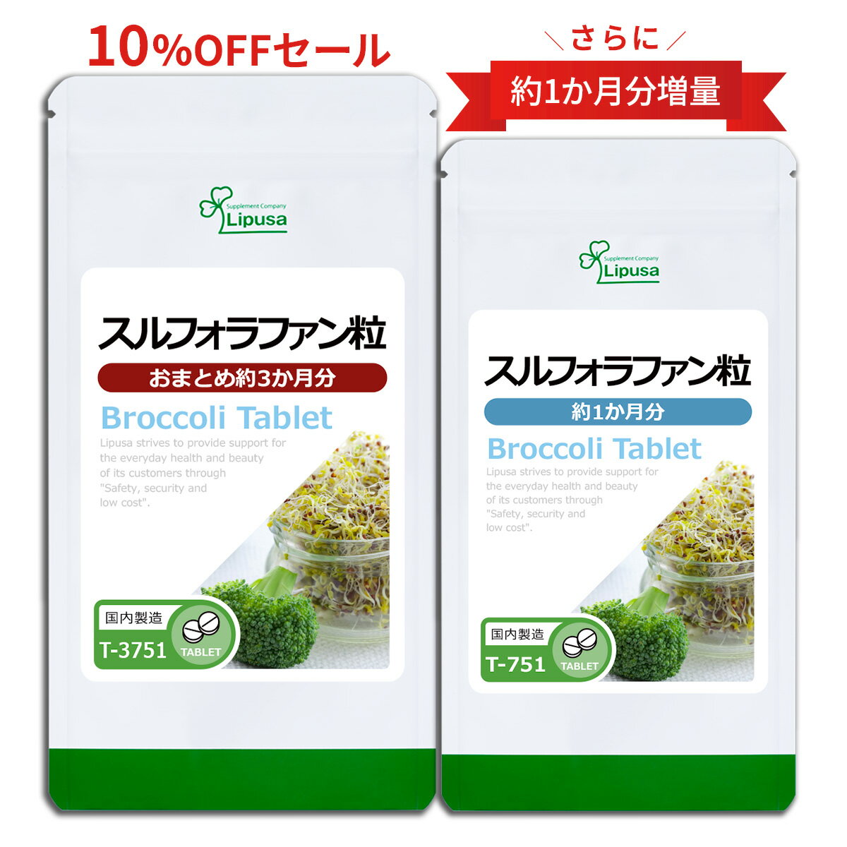 【楽天限定特典付き】 スルフォラファン粒 約3か月分 T-3751 (180粒) 送料無料 リプサ サプリメント ISA アイエスエー ブロッコリースプラウト スルフォラファン粒 3袋セットより 200円 お特 《おまとめエコパック》 2,250 ~