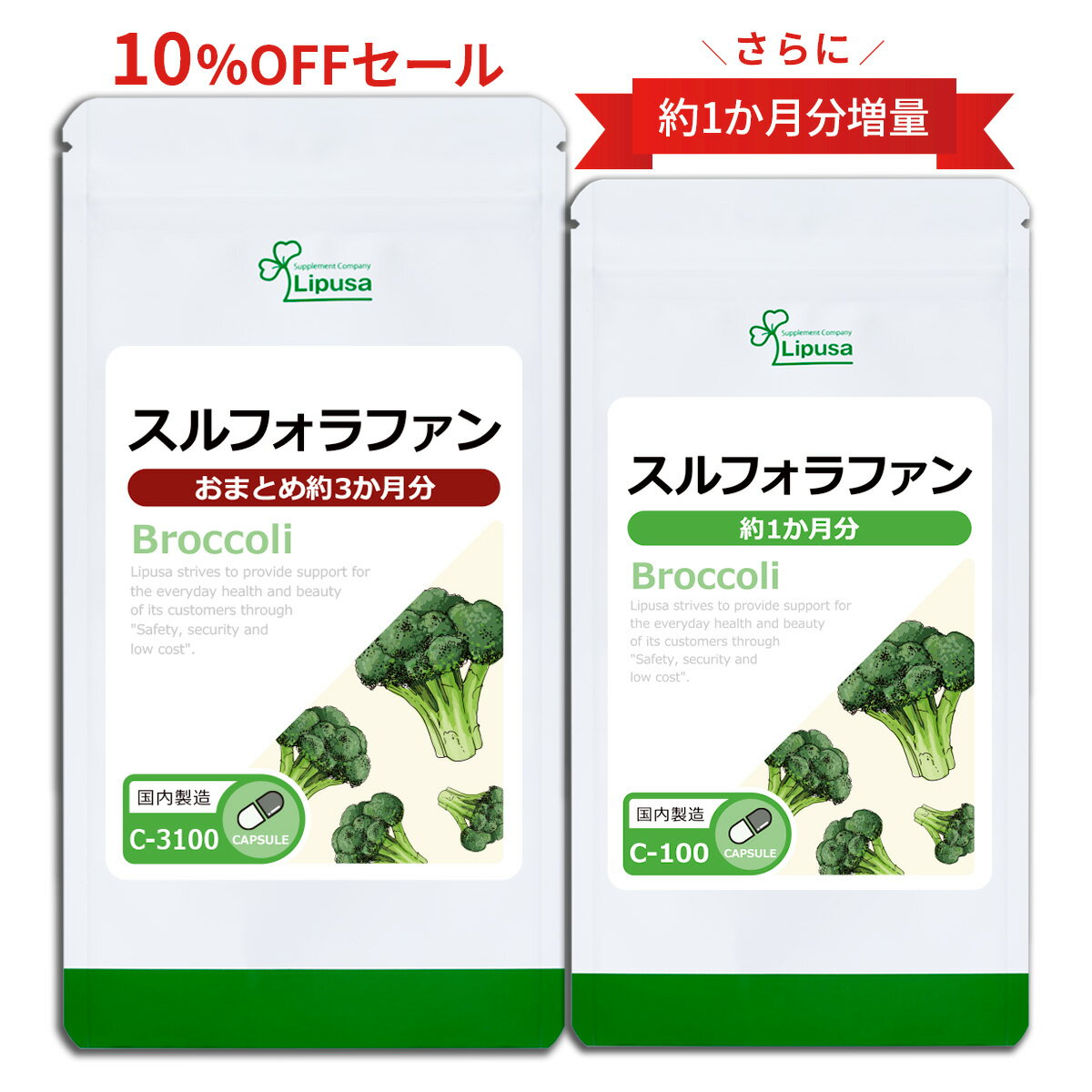 【楽天限定特典付き】 スルフォラファン 約3か月分 C-3100 (180カプセル) 送料無料 リプサ サプリメント ISA アイエスエー 国産 ブロッコリー 使用 3袋セットより200円お特 《おまとめエコパック》 3,150 ~