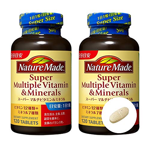 【商品名】 ネイチャーメイド マルチビタミン 【このような場合に】 【こんな方におすすめ】 ●美容に気をつかう方。 ●ダイエットをしている方。 ●1日1粒でOKなタイプ。 ●食生活が気になる方。 【保管上の注意】 高温・多湿・直射日光をさけてください。 【製造販売会社】 大塚製薬(Otsuka) 【ご使用について】 【お召し上がり方】 栄養補給として1日1粒を目安に、水やぬるま湯などでお飲みください。 【注意事項】 ●乳幼児・小児は摂取しないでください。 ●本品は、多量摂取により疾病が治癒したり、より健康が増進するものではありません。 ●1日の摂取目安量を守ってください。 ●ビタミンAを含みますので、妊娠3か月以内又は妊娠を希望する女性は過剰摂取にならないよう注意してください。 ●本品は、特定保健用食品と異なり、消費者庁長官による個別審査を受けたものではありません。 【原材料】 ●原材料名 乳糖、寒天/セルロース、V.C、アカシアガム、V.E、グリセリン脂肪酸エステル、微粒酸化ケイ素、ナイアシンアミド、パントテン酸Ca、V.B6、V. B2、V.B1、V.A、葉酸、ビオチン、V.D、V.B12 ●栄養成分表示[1粒(0.96g)当たり] エネルギー 3.97kcal、タンパク質 0?0.1g、脂質 0?0.1g、炭水化物 0.805g、食塩相当量 0?0.01g、ビタミンA 600μg、ビタミンB1 1.5mg、ビタミンB2 1.7mg、ビタミンB6 2.0mg、ビタミンB12 3.0μg、ナイアシン 15mg、パントテン酸 6.0mg、ビオチン 50μg、葉酸 240μg、ビタミンC 300mg、ビタミンD 5.0μg、ビタミンE 26.8mg ●アレルギー物質(28品目中) 乳成分 製品の特徴 ●ネイチャーメイド マルチビタミン(Nature Made Multiple Vitamin) ●ビタミンサプリメント(栄養機能食品) ●1日1粒で12種類のビタミンが摂れ、毎日無理なく続けていただけます。 ●美容に気をつかう方、ダイエットをしている方、食生活が気になる方におすすめです。 ●香料・着色料・保存料 無添加。 ●目安量:1日1粒 ●名称:ビタミン含有食品 ●栄養機能食品(ビオチン・ビタミンB2・パントテン酸) ◇ビオチン、ビタミンB2、及びパントテン酸は、皮膚や粘膜の健康を助ける栄養素です。 ●健康食品/栄養補助食品/ビタミン剤 ●マルチビタミン…性別・年齢別で1人1日あたりに、どのビタミンをどれくらい摂ったらよいかを知る目安となるのが「栄養所要量」です。 この栄養所要量は、健康を維持するために摂り過ぎも不足もなく適切な摂取量を示す基本ライン。 まずは、栄養所要量を満たしてトータルに摂る、ここから健康の土台づくりをはじめましょう。