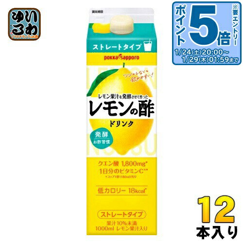 > こちらの商品の単品・まとめ買いはこちら【一個あたり 366円(税込)】【賞味期間】製造後9ヶ月【商品説明】レモン果汁を発酵させて作ったレモンの酢を使ったレモンの酢ドリンクです。 スッキリさわやかなレモンの味わいとツンとしないまろやかな酸味で飲みやすく、健康やキレイのために毎日手軽に続けられます。 【名称および品名】清涼飲料水【エネルギー】コップ1杯(180ml)あたり18kcal【栄養成分】たんぱく質0g、脂質0g、炭水化物4.9g(糖質4.9g、食物繊維0g)、食塩相当量0.16g、ビタミンC125mg【原材料】レモン果汁(レモン(アルゼンチン))、醸造酢、砂糖、レモン果皮エキス/酸味料、ビタミンC、香料、甘味料(スクラロース、アセスルファムK)【保存方法】常温【製造者、販売者、又は輸入者】ポッカサッポロフード&ビバレッジ【変更事項】ページリニューアル日:2023/08/18変更内容:商品名、パッケージ※北海道・沖縄県・離島(一部)へのお届けは決済時に送料無料となっていても追加送料が必要です。 (コカ・コーラ直送を除く)北海道1個口 715円(税込)、沖縄県1個口 2420円(税込)※離島・一部地域は追加送料がかかる場合があります。 追加送料の詳細は注文確定メールにてご案内いたします。 ※本商品はご注文タイミングやご注文内容によっては、購入履歴からのご注文キャンセル、修正を受け付けることができない場合がございます。 変更・修正ができない場合は、メール、お電話にてご連絡をお願い致します。 ■ 法人・団体のお客様 大口購入のご相談承ります ■法人のお客様、各種団体のお客様で、まとまった数量でのご購入をご検討の際は、お気軽にご相談ください。 お客様のご要望に合わせて柔軟に対応させていただきます。 まずはお気軽にお問い合わせフォームよりご連絡ください。 送料無料 お酢飲料 飲む酢 れもんのす 発酵 お酢習慣 飲みやすい クエン酸 ストレートタイプ 飲用酢 おす 檸檬 果汁 れもん ポッカ 1000ml 紙パック 6本入 1L ケース まとめ買い セット 2リットル 1リットル 4902471102176 〔エントリーでポイント5倍!〕 ポッカサッポロ レモン果汁を発酵させて作った レモンの酢 ストレート 1L 紙パック 12本 (6本入×2 まとめ買い) 酢飲料 ストレート 低カロリー 4,380 ~