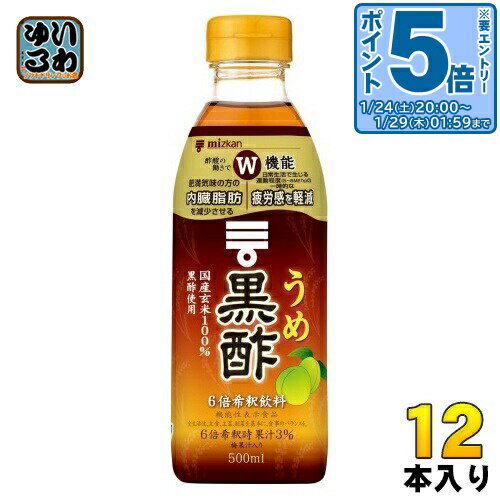 > こちらの商品の単品・まとめ買いはこちら【一個あたり 800円(税込)】【賞味期間】製造後360日【商品説明】国産玄米を100%使って醸造した黒酢に、梅果汁を加えて飲みやすく仕上げた、おいしく黒酢をとることができる黒酢飲料です。 6倍希釈タイプです。 本品60ml(希釈後360ml)に食酢(黒酢)の主成分である酢酸750mgを含んでいます。 酢酸には肥満気味の方の内臓脂肪を減少させる機能があることが報告されています。 内臓脂肪が気になる方に適した、機能性表示食品です。 【広告文責】 株式会社ナカヱ 050-3786-3286【メーカー名】 株式会社ミツカン【製造国】 日本製【商品区分】 機能性表示食品【名称および品名】清涼飲料水(希釈用)【エネルギー】一日摂取目安量(60ml)あたり26kcal【栄養成分】たんぱく質0g、脂質0g、炭水化物6.7g【原材料】米黒酢(国内製造)、梅果汁、果糖ぶどう糖液糖、黒糖入り砂糖液/クエン酸、香料、甘味料(スクラロース)【保存方法】常温【製造者、販売者、又は輸入者】株式会社ミツカン【変更事項】ページリニューアル日:2024/09/18変更内容:パッケージ※北海道・沖縄県・離島(一部)へのお届けは決済時に送料無料となっていても追加送料が必要です。 (コカ・コーラ直送を除く)北海道1個口 715円(税込)、沖縄県1個口 2420円(税込)※離島・一部地域は追加送料がかかる場合があります。 追加送料の詳細は注文確定メールにてご案内いたします。 ※本商品はご注文タイミングやご注文内容によっては、購入履歴からのご注文キャンセル、修正を受け付けることができない場合がございます。 変更・修正ができない場合は、メール、お電話にてご連絡をお願い致します。 ■ 法人・団体のお客様 大口購入のご相談承ります ■法人のお客様、各種団体のお客様で、まとまった数量でのご購入をご検討の際は、お気軽にご相談ください。 お客様のご要望に合わせて柔軟に対応させていただきます。 まずはお気軽にお問い合わせフォームよりご連絡ください。 送料無料 酢飲料 飲むお酢 ビネガー 酢 梅 ウメ 黒酢 果汁 酢酸 肥満気味 内臓脂肪 健康 mizkan 分類: 500ml (350ml〜699ml) Fruity 割 ケース まとめ買い セット 4902106799337 〔エントリーでポイント5倍!〕 ミツカン うめ黒酢 6倍希釈用 500ml ペットボトル 12本 (6本入×2 まとめ買い) お酢飲料 機能性表示食品 ドリンク 9,590 ~