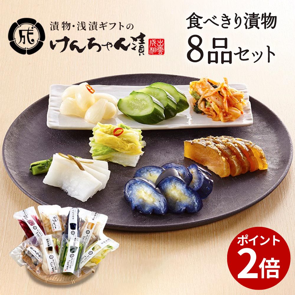 商品説明 商品名 食べきり漬物8品セット 内容 ・昆布白菜 80g ・あさづけ胡瓜 1本 ・砂丘らっきょう 100g ・りんご茄子 1本 ・みょうがの甘酢漬 80g ・ゆず大根 80g ・割漬大根 120g ・青しま瓜の粕漬 100g 賞味期限 ・昆布白菜(刻み):6日 ・あさづけ胡瓜:8日 ・りんご茄子・割漬大根:10日 ・ゆず大根:15日 ・青しま瓜の粕漬:45日 ・みょうがの甘酢漬:60日 ・砂丘らっきょう:90日 その他 ・冷蔵便でお届けします。 ・到着後はお早めにご召し上がりください。 関連キーワード 浅漬け 白菜 浅漬け 漬物 漬け物 漬物 ギフト 漬物 セット ギフト 漬物 ギフト 高級 漬物 詰め合わせ ギフト きゅうり 漬物 きのこ 漬物 漬物 お取り寄せ 漬物 お歳暮 漬物 塩分 小分け 漬物 麹 漬物 漬物 取り寄せ 干し 大根 漬物 漬物 千枚漬け セロリ 漬物 にんにく 漬物 かぶ 漬物 山菜 漬物 白菜 漬物 塩の分量 生姜 漬物 大根 漬物 醤油 漬物 種類 白菜 漬物 なす 漬物 漬け物 たくあん 漬物 高菜 漬け物 酒粕 酒粕 漬物 漬物 作り 漬物 漬け 減塩 漬物 漬物 ごぼう ご飯のお供 漬物 漬物 もり 漬物 パック 大根 漬物 漬物 詰め合わせ 漬物 漬け物 漬物 漬物 らっきょ 漬物 お歳暮ギフト 漬物 漬物 御歳暮 かぶ 漬け物 酒粕 漬物用 大根 漬物用 醤油 漬け 漬物※関連キーワードは商品の説明ではありません漬物 セット ギフト 高級 おしゃれ 詰め合わせ 浅漬 【 食べきり漬物8品セット 】 白菜 きゅうり らっきょう なす みょうが 大根 青しま瓜 粕漬 お取り寄せ 小分け 酒粕 ご飯のお供 パック 漬け物 つけもの 国産 手作り 野菜漬物 出雲の手づくり漬物けんちゃん漬 浅漬の白菜、きゅうり、なす、大根等を詰め合わせた漬物の詰め合わせセット。 ギフトにもよく使われるおしゃれな小分けサイズ。 ご飯のお供にも最適な国産野菜の漬け物をどうぞ。 漬物の種類から選ぶ \お買い物マラソン/ 8種類食べきりサイズ 漬物 セット ギフト お歳暮 高級 おしゃれ 詰め合わせ 浅漬 【 食べきり漬物8品セット 】 白菜 きゅうり らっきょう なす みょうが 大根 青しま瓜 粕漬 お取り寄せ 漬け物 つけもの 国産 野菜漬物 出雲の手づくり漬物けんちゃん漬 4,500 ~