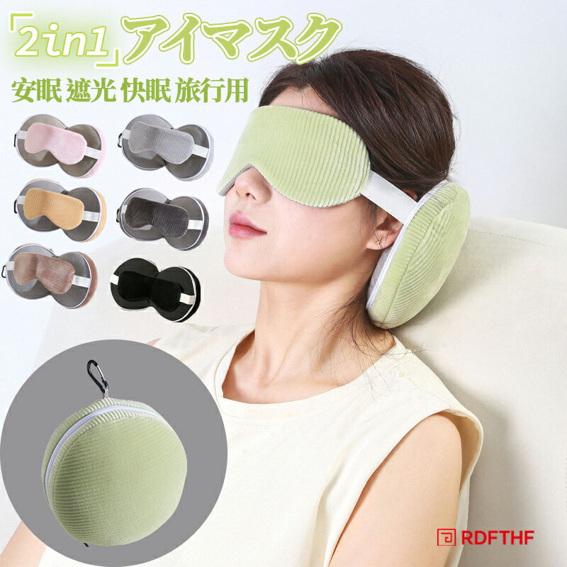 枕にもなる2in1アイマスクです♪小さくコンパクトになる、カラビナ付きで持ち運びに便利◎【商品詳細】アイマスク × ネックピロー 2in1 デザイン遮光アイマスクとネックピローが一体になった多機能デザインで、目元と首元を同時にリラックスさせられます。 旅行や出張、自宅での昼寝に最適です。 高遮光性素材厚手のコーデュロイ素材を使用し、外部の光をしっかり遮断。 快適な睡眠環境を作り、いつでもどこでも深い眠りにつけます。 柔らかく肌触りの良い素材柔らかく通気性に優れたコーデュロイ素材は肌に優しく、長時間使用しても不快感がありません。 コンパクトで持ち運びに便利カラビナ付きの専用収納袋に収納可能で、かさばらずにバッグに入れられます。 飛行機新幹線夜行バスなどの長距離移動や出張に最適です。 調整可能なストラップ頭回りに合わせてストラップの長さを調整できるため、しっかりフィットしてズレにくいです。 【サイズについて】画像をご参照ください。 【カラーについて】生産ロットにより柄の出方や色の濃淡が異なる場合がございます。 お使いのモニターや撮影時の光の加減などにより画像と実際の商品のカラーが異なる場合もございます。 予告なしにカラーやデザインなどの変更がある場合もございます。