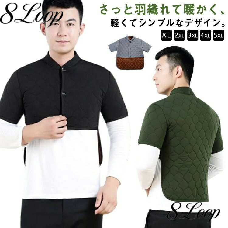 上半身、特に肩や背中が冷える方にオススメの肩当てです。 さっと羽織れて裏起毛で暖かく、軽くてシンプルなデザイン。 四十肩・五十肩による肩こりでお悩みの方に、最適な温活肩サポーターです。 スナップボタン仕様ですのでラクに着替えができます。 柔らかく軽量なので、着ていただいても、重さを感じませんので、肩が凝らず快適。 裏起毛は厚手のしっかりとした起毛感なので防寒性が強く、ご自宅で丸洗いできるので、汚れても大丈夫。 いつも清潔でお使いいただけ、気持ちいい。 軽くて動きやすく、あたたかいので日中の家事の時や入浴後、睡眠時の肩口の冷え対策など様々なシチュエーションでお使いいただけます。 サイズ XL 2XL 3XL 4XL 5XL サイズについての説明 【XL】着丈35cm バスト98-105cm 肩幅41cm おすすめ身長165-175cm おすすめ体重55-60kg 【2XL】着丈36cm バスト100-108cm 肩幅42cm おすすめ身長165-175cm おすすめ体重57.5-65kg 【3XL】着丈37cm バスト105-115cm 肩幅43cm おすすめ身長170-175cm おすすめ体重65-70kg 【4XL】着丈38cm バスト110-120cm 肩幅44cm おすすめ身長175-180cm おすすめ体重70-77.5kg 【5XL】着丈40cm バスト115-125cm 肩幅45cm おすすめ身長180-185cm おすすめ体重80-90kg※上記サイズは平置き実寸になります。 サイズ表の実寸法は商品によって1-3cm程度の誤差がある場合がございます。 素材 ポリエステル 綿 色 ブラック カーキ グレー 備考 ●サイズ詳細等の測り方はスタッフ間で統一、徹底はしておりますが、実寸は商品によって若干の誤差(1cm?3cm )がある場合がございますので、予めご了承ください。 ●商品の色は、撮影時の光や、お客様のモニターの色具合などにより、実際の商品と異なる場合がございます。 あらかじめ、ご了承ください。 ●製品によっては、生地の特性上、洗濯時に縮む場合がございますので洗濯時はご注意下さいませ。 ▼色味の強い製品によっては他の衣類などに色移りする場合もございますので、速やかに(脱水、乾燥等)するようにお願いいたします。 ▼生地によっては摩擦や汗、雨などで濡れた時は、他の製品に移染する恐れがございますので、着用の際はご注意下さい。 ▼生地の特性上、やや匂いが強く感じられるものもございます。 数日のご使用や陰干しなどで気になる匂いはほとんど感じられなくなります。