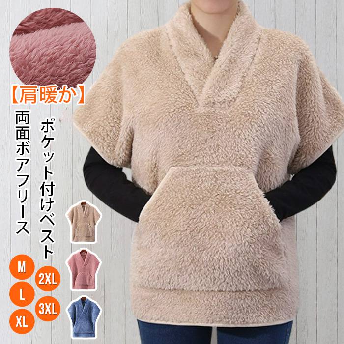 【送料無料】あったか 肩当て 着る毛布 プレゼント もこもこ ベスト あったか 防寒 無地 フリース ボア 秋 冬 肩あて 腰 背中 ボアベスト レディース 保温 暖かい 部屋着 ルームウェア 毛布 祖父母 高齢者 大きいサイズ お年寄り 老人 1,499 ~