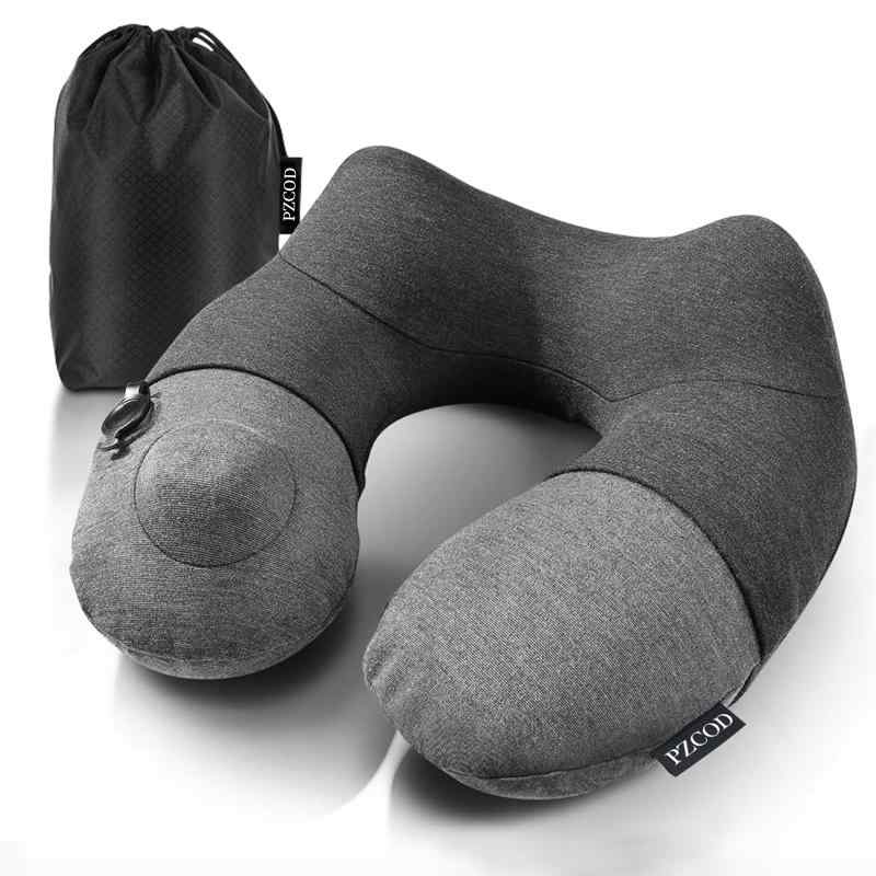 ネックピロー 飛行機 携帯枕 U型 エアーピロー プレス式膨らませる 収納袋 自宅 バス オフィス 2,709 ~