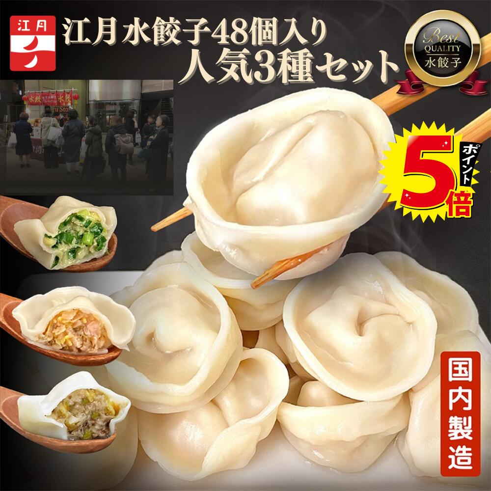 モチモチ感のある皮に、豚肉、青梗菜、白菜、 椎茸等の野菜を加えた色鮮やかな手作り水餃子です。 付属のタレをつけてお召し上がりください。 商品名称 水餃子 内容量 (30g×10個)×1袋 賞味期限 一括表示シール枠内に記載 調理方法 冷凍のまま沸騰したお湯の中に入れ、約8分間ゆでて下さい。 原材料名 皮(小麦粉(国内製造)、でん粉、ラード、グラニュー糖、食塩、食用植物油脂)、豚肉(国産)、青梗菜(国産)、白菜(国産)、しいたけ、豚脂、砂糖、食塩、ごま油、ラード、醤油、胡椒/加工デンプン、調味料(アミノ酸等)、(一部に小麦・豚肉・大豆・ごまを含む) 本商品に含まれるアレルギー物質 特定原材料:小麦 特定原材料に準ずるもの:ごま・大豆・豚肉 本品製造工場ではえび、かに、卵、乳成分、落花生を含む製品を生産しています。 保存方法 ー18℃以下で保存してください。 栄養成分表示(1個30g当たり) エネルギー: 62kcal たんぱく質: 2.2g 脂質: 2.6g 炭水化物: 7.4g 食塩相当量: 0.3g ※栄養成分は水餃子のみの値です。 (この表示値は目安です。 ) 【水餃子】 モチモチ感たっぷりの皮にお野菜がぎっしりつまったあっさり水餃子です。 1,000 ~