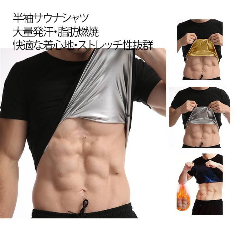 サウナシャツ 発汗シャツ 半袖 メンズ 着るサウナ サウナスーツ ヒートシャツ サウナウェア サウナインナー ダイエットスーツ Tシャツ 発汗インナー 引き締め ランニング スポーツウェア 春 夏 秋 冬 洗濯可能 カロリー消費 送料無料 1,780 ~