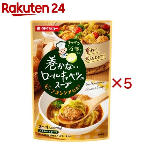 お店TOP>フード>加工食品・惣菜>スープ・シチュー>スープ全部>巻かないロールキャベツ用スープ (750g×10セット)【巻かないロールキャベツ用スープの商品詳細】●トマトペーストにビーフとフォン・ド・ヴォーのコク深い旨みと野菜の甘みを加え、ナツメグ・ローレルで風味よく仕上げました。 ●材料を重ねて煮込むだけで、キャベツをたっぷり食べられる「巻かないロールキャベツ」をお楽しみいただけます。 【品名・名称】ロールキャベツ用スープ(ストレートタイプ)【巻かないロールキャベツ用スープの原材料】果糖ぶどう糖液糖(国内製造)、トマトペースト、食塩、ビーフエキス、フォンドヴォー、ミルポアペースト、酵母エキス、香味油、ローストオニオン、ナツメグ、ローレル、ガーリックパウダー、こしょう/調味料(アミノ酸等)、増粘剤(キサンタン)、(一部に小麦・牛肉・大豆・鶏肉・豚肉を含む)【栄養成分】本品1人前(214g)当たりエネルギー:43kcal、たんぱく質:1.9g、脂質:0.2g、炭水化物:8.1g、食塩相当量:5.2g【アレルギー物質】小麦・牛肉・大豆・鶏肉・豚肉【保存方法】開封前は常温で保存してください。 【原産国】日本【ブランド】ダイショー【発売元、製造元、輸入元又は販売元】ダイショー※説明文は単品の内容です。 リニューアルに伴い、パッケージ・内容等予告なく変更する場合がございます。 予めご了承ください。 ・単品JAN:4904621140328ダイショー東京都墨田区亀沢1丁目17-30120-092860広告文責:楽天グループ株式会社電話:050-5577-5043[スープ/ブランド:ダイショー/] 巻かないロールキャベツ用スープ(750g×10セット)【ダイショー】 3,980 ~