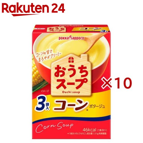 お店TOP>フード>加工食品・惣菜>スープ・シチュー>コーンスープ>おうちスープ コーン (3袋入×10セット)【おうちスープ コーンの商品詳細】●定番のコーンスープが手軽に楽しめるスープです。 コーンの甘さとまろやかクリーミーなおいしさを楽しめます。 ●手軽に使いやすい個包装3食入りです。 ●1食当りのとうもろこし配合量:2.31g(乾燥重量)【品名・名称】乾燥スープ(ポタージュ)【おうちスープ コーンの原材料】砂糖(国内製造)、スイートコーンパウダー、ホエイパウダー、クリーミングパウダー、食塩、チキンエキス、乳糖、野菜パウダー、たんぱく加水分解物、酵母エキス、香辛料、でん粉/増粘剤(加工でん粉、グァーガム)、調味料(アミノ酸等)、香料、(一部に小麦・乳成分・鶏肉を含む)【栄養成分】1食分(12.0g)当たりエネルギー:46kcalたんぱく質:0.7g、脂質:0.9g、炭水化物:8.7g、食塩相当量:1.2g【アレルギー物質】小麦・乳成分・鶏肉【保存方法】高温多湿・直射日光をさけ常温で保存【発売元、製造元、輸入元又は販売元】ポッカサッポロフード&ビバレッジ本品は、在庫限りで販売終了となります。 ※説明文は単品の内容です。 リニューアルに伴い、パッケージ・内容等予告なく変更する場合がございます。 予めご了承ください。 ・単品JAN:4902471100516ポッカサッポロフード&ビバレッジ460-0008 名古屋市中区栄3-27-10120-885547広告文責:楽天グループ株式会社電話:050-5577-5043[スープ] おうちスープ コーン(3袋入×10セット) 1,550 ~
