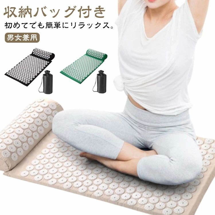 初めてでも簡単にリラックス。 寝るだけで、日々のストレスを解消する。 スパイクマット&ピローの2点セット。 【収納バッグ付き】長時間のデスクワークや運動後の疲れた体を、このマットに20分間横になるだけでリフレッシュできます。 背中がじわ〜っと温かくなり、深いリラクゼーションを体感できるので、日々のストレスを解消する新しい習慣として最適です。 厚みのあるフォームベッドと枕には、何千ものプラスチックの指圧ポイントが付いています。 体の経絡に沿ってツボを指圧して、背中、首、足などの凝った部分の緊張をほぐせます。 運動後の筋肉のケアや、ヨガセッション終わりにも使用できます。 専用ケースが付属しており、折りたたんで簡単に持ち運びが可能です。 素材はコットンと植物由来フォームで、手洗いが可能です。 どこでもリラックスしたいあなたのための理想的なマットです。 サイズ マット+枕(66*42CM) サイズについての説明 セット内容:マッサージマット+収納バッグ+首枕 66*42CM 素材 ポリエステル、PU、コットン、ABS 色 ブラック ピンク グリーン パープル イエロー ブルー グレー アイボリー 備考 ●サイズ詳細等の測り方はスタッフ間で統一、徹底はしておりますが、実寸は商品によって若干の誤差(1cm〜3cm )がある場合がございますので、予めご了承ください。 ●製造ロットにより、細部形状の違いや、同色でも色味に多少の誤差が生じます。 ●パッケージは改良のため予告なく仕様を変更する場合があります。 ▼商品の色は、撮影時の光や、お客様のモニターの色具合などにより、実際の商品と異なる場合がございます。 あらかじめ、ご了承ください。 ▼生地の特性上、やや匂いが強く感じられるものもございます。 数日のご使用や陰干しなどで気になる匂いはほとんど感じられなくなります。 ▼同じ商品でも生産時期により形やサイズ、カラーに多少の誤差が生じる場合もございます。 ▼他店舗でも在庫を共有して販売をしている為、受注後欠品となる場合もございます。 予め、ご了承お願い申し上げます。 ▼出荷前に全て検品を行っておりますが、万が一商品に不具合があった場合は、お問い合わせフォームまたはメールよりご連絡頂けます様お願い申し上げます。 速やかに対応致しますのでご安心ください。 初めてでも簡単にリラックス。 寝るだけで、日々のストレスを解消する。 スパイクマット&ピローの2点セット。 【収納バッグ付き】長時間のデスクワークや運動後の疲れた体を、このマットに20分間横になるだけでリフレッシュできます。 背中がじわ〜っと温かくなり、深いリラクゼーションを体感できるので、日々のストレスを解消する新しい習慣として最適です。 厚みのあるフォームベッドと枕には、何千ものプラスチックの指圧ポイントが付いています。 体の経絡に沿ってツボを指圧して、背中、首、足などの凝った部分の緊張をほぐせます。 運動後の筋肉のケアや、ヨガセッション終わりにも使用できます。 専用ケースが付属しており、折りたたんで簡単に持ち運びが可能です。 素材はコットンと植物由来フォームで、手洗いが可能です。 どこでもリラックスしたいあなたのための理想的なマットです。 サイズ マット+枕(66*42CM) サイズについての説明 セット内容:マッサージマット+収納バッグ+首枕 66*42CM 素材 ポリエステル、PU、コットン、ABS 色 ブラック ピンク グリーン パープル イエロー ブルー グレー アイボリー 備考 ●サイズ詳細等の測り方はスタッフ間で統一、徹底はしておりますが、実寸は商品によって若干の誤差(1cm〜3cm )がある場合がございますので、予めご了承ください。 ●製造ロットにより、細部形状の違いや、同色でも色味に多少の誤差が生じます。 ●パッケージは改良のため予告なく仕様を変更する場合があります。 ▼商品の色は、撮影時の光や、お客様のモニターの色具合などにより、実際の商品と異なる場合がございます。 あらかじめ、ご了承ください。 ▼生地の特性上、やや匂いが強く感じられるものもございます。 数日のご使用や陰干しなどで気になる匂いはほとんど感じられなくなります。 ▼同じ商品でも生産時期により形やサイズ、カラーに多少の誤差が生じる場合もございます。 ▼他店舗でも在庫を共有して販売をしている為、受注後欠品となる場合もございます。 予め、ご了承お願い申し上げます。 ▼出荷前に全て検品を行っておりますが、万が一商品に不具合があった場合は、お問い合わせフォームまたはメールよりご連絡頂けます様お願い申し上げます。 速やかに対応致しますのでご安心ください。