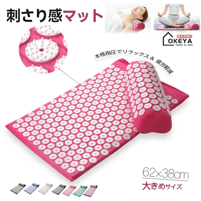 【指圧マット+枕+収納バッグ】【折りたたみ収納】ストレス、痛み、筋肉緊張を緩和し、首の痛みを緩和し、血液循環を増加させることができます。 指圧マッサージマット自体を癒しの身体の生来の道をトリガしながら活性化と若返りながら、ツボの数千人は、マットと枕緊張を緩和し、深いリラクゼーションの状態を誘導するための非常に有効なツールとなっています。 背中痛、緊張、硬直、不眠、疲労などの多種の情況の緩和に適用します。 特別なTPE原料、肌のようなタッチ、無毒な副作用、より安全で環境にやさしい。 圧力ポイント療法マッサージは使いやすいです部屋、勉強、リビング、寝室で使用することができ、また簡単に運ぶために、仕事、ギフト収納袋で使用することができます。 サイズ 枕+マット+収納バッグ サイズについての説明 マットサイズ:65×41cm 枕サイズ:38×15cm ※サイズ計測には誤差が生じます。 素材 ABS TPR 綿 色 グリーン パープル ブルー ブラック レッド グレー ベージュ ライトブルー 備考 ●サイズ詳細等の測り方はスタッフ間で統一、徹底はしておりますが、実寸は商品によって若干の誤差(1cm〜3cm )がある場合がございますので、予めご了承ください。 ●製造ロットにより、細部形状の違いや、同色でも色味に多少の誤差が生じます。 ●パッケージは改良のため予告なく仕様を変更する場合があります。 ▼商品の色は、撮影時の光や、お客様のモニターの色具合などにより、実際の商品と異なる場合がございます。 あらかじめ、ご了承ください。 ▼生地の特性上、やや匂いが強く感じられるものもございます。 数日のご使用や陰干しなどで気になる匂いはほとんど感じられなくなります。 ▼同じ商品でも生産時期により形やサイズ、カラーに多少の誤差が生じる場合もございます。 ▼他店舗でも在庫を共有して販売をしている為、受注後欠品となる場合もございます。 予め、ご了承お願い申し上げます。 ▼出荷前に全て検品を行っておりますが、万が一商品に不具合があった場合は、お問い合わせフォームまたはメールよりご連絡頂けます様お願い申し上げます。 速やかに対応致しますのでご安心ください。