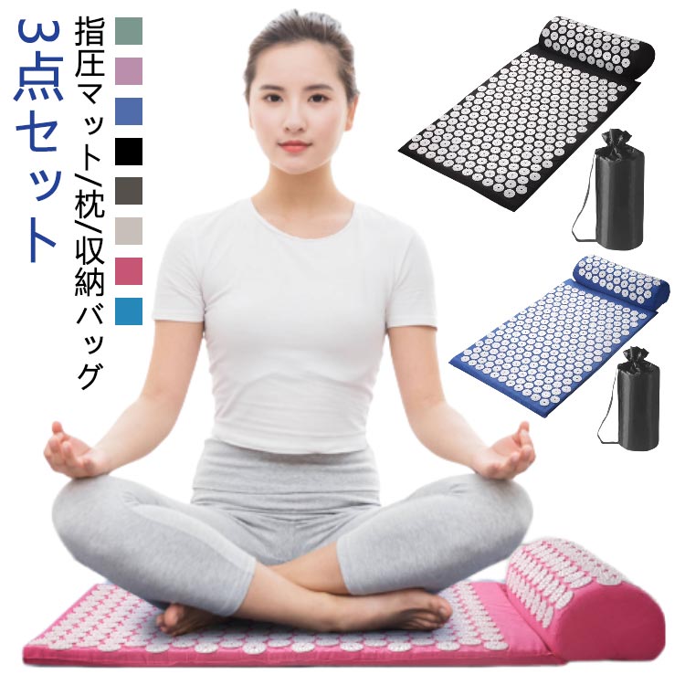 指圧スパイクマット トレーニング 室内 室外 3点セット 血液循環 鍼治療 収納バッグ付き 枕 指圧マット 痛みリラックス ヨガマット 自宅 男女兼用 刺さり感 ヨガシャクティマットリラクゼーション 3点セット 筋肉トレー ジム 厚手 フィットネス 2,010 ~