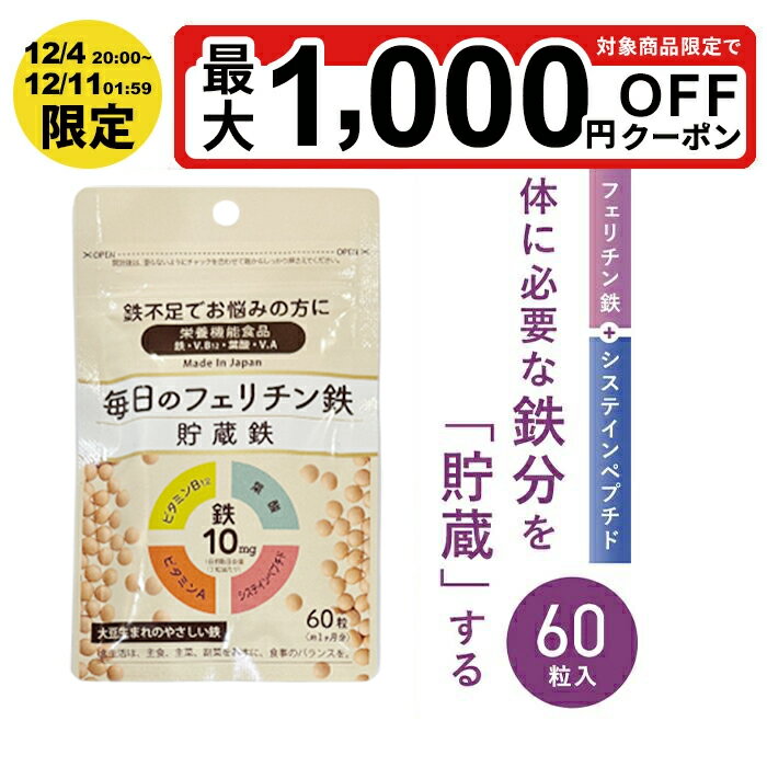 【最大P5倍 1/24 20:00〜1/29 1:59迄】フェリチン鉄60粒 システインペプチド(鉄・ビタミンB12・葉酸・ビタミンA) 2,980 ~