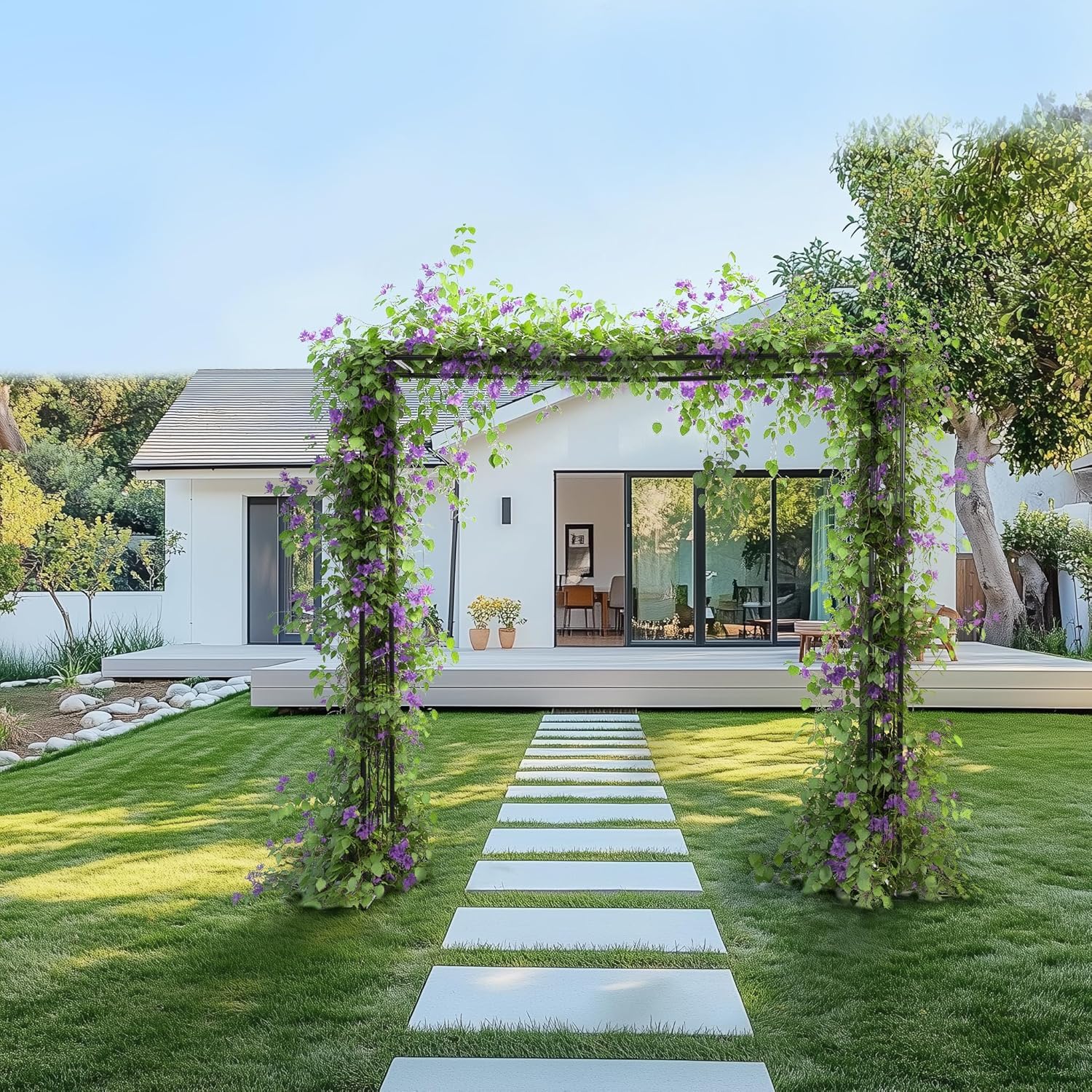 ◎01ガーデンを魅力的に演出するフラワーアーチ一度設置すれば、四季折々の花々が咲き誇り、ツル性の植物が絡まりながら、まるで夢のような空間を作り出します。 これだけで、ガーデニングの楽しさが倍増!◎02 上品なデザイン四角いデザインで、植物がない状態でも可愛らしく飾ることができます。 自由な飾り方高さ188cm、幅184cmの広い空間には、さまざまなツル植物や花を絡ませることができ、庭全体が色とりどりの花で埋め尽くされ、自然と調和した美しい空間が広がります。 ◎03 高耐久素材高品質なスチール製で、粉体塗装を施して、強風や雨にも耐える優れた耐久性。 長年にわたって使用できます。 ◎04 アンカーピン4本付きガーデンアーチの転倒を防ぐアンカーピン付き。 地面にしっかり固定できるため、安定感抜群! 庭やエントランスに設置してもグラつきにくく、美しいお庭を長く楽しめます。 ご注意:風の影響を受けやすい場所に設置する場合や、強風が予想される場合は、アンカーピンだけでは完全に転倒を防ぐことができない可能性があります。 お客様の判断で別途転倒防止策を施してください。 ◎05組立簡単わかりやすい図解付き説明書があるので、初めての方でも安心して組み立てられます。 シンプルな構造でパーツの取り付けも簡単、2人で約20分ほどでスムーズに設置できます。 ◎01ガーデンを魅力的に演出するフラワーアーチ一度設置すれば、四季折々の花々が咲き誇り、ツル性の植物が絡まりながら、まるで夢のような空間を作り出します。 これだけで、ガーデニングの楽しさが倍増! ◎02 上品なデザイン四角いデザインで、植物がない状態でも可愛らしく飾ることができます。 自由な飾り方高さ188cm、幅184cmの広い空間には、さまざまなツル植物や花を絡ませることができ、庭全体が色とりどりの花で埋め尽くされ、自然と調和した美しい空間が広がります。 ◎03 高耐久素材高品質なスチール製で、粉体塗装を施して、強風や雨にも耐える優れた耐久性。 長年にわたって使用できます。 ◎04 アンカーピン4本付きガーデンアーチの転倒を防ぐアンカーピン付き。 地面にしっかり固定できるため、安定感抜群! 庭やエントランスに設置してもグラつきにくく、美しいお庭を長く楽しめます。 ご注意:風の影響を受けやすい場所に設置する場合や、強風が予想される場合は、アンカーピンだけでは完全に転倒を防ぐことができない可能性があります。 お客様の判断で別途転倒防止策を施してください。 ◎05組立簡単わかりやすい図解付き説明書があるので、初めての方でも安心して組み立てられます。 シンプルな構造でパーツの取り付けも簡単、2人で約20分ほどでスムーズに設置できます。
