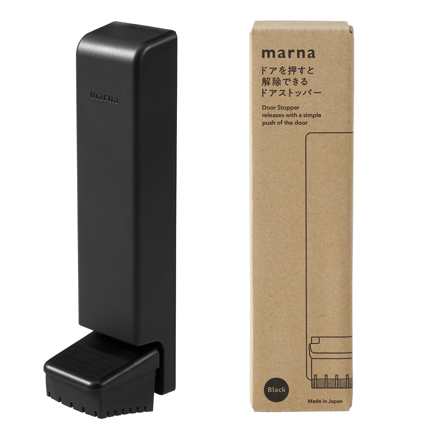 ※ご購入前に必ずご一読ください※【対応ドア】・マグネットがつくドアに使用可能(鉄製ドア、木目調シート付き鉄製ドアなど)なお、シートの厚みにより付かない場合があります。 ご使用前に必ずマグネットがつくかご確認ください。 【非対応ドア】・マグネットがつかないドア(ガラス・アルミ・凸凹のある表面)、引き戸、内開きドア【設置条件】・ドアを約90度開いた状態で、ドア下から地面までのすき間が5cm以内(玄関外は傾斜がある場合があります。 開いた状態で必ず事前に計測してください。 )【直接触れずに固定&解除できる】固定するときは足でペダルを踏みこみ、ドアを外側に押すとペダルが上がり解除できるドアストッパーです。 両手がふさがっていても簡単に固定と解除ができます。 ※本品はドアを開く方向に押す力を利用してペダルが解除される商品です。 次のような想定外の力がかかるとゴムが外れてしまう場合がございます。 ・ペダルが下がったままドアを閉めようとした場合・ペダルが下がった状態で引きずられてしまった場合【強力なネオジム磁石でしっかり取り付け】背面の磁石は強力なネオジム磁石を使用しており、しっかりと取り付けできます。 ドアを固定する際はもちろん、ペダルを踏みこむ際もずれにくい仕様です。 【しっかりグリップして止まる】タイヤから着想を得た溝のパターンと弾力性のあるゴムで地面に密着し、しっかりグリップして止まります。 足で本体下のペダルを「カチッ」というまで踏み込むと扉が固定されます。 ※ゴムに関しては本体部分と粘着等で設置しているものではなく、本体の凹凸部分とゴムの凹凸をかみ合わせて はめていただく商品となっております。 万が一ゴムが外れたら、ペダルとゴムの凹凸を合わせてはめ直してください。 【日常のあらゆる場面で活躍】荷物を持って両手がふさがっている時や、宅配の受け取り、ベビーカーを玄関に入れるときなど様々なシーンで活躍します。 【材質】本体:ABS樹脂・ポリアセタール ペダルゴム:合成ゴム マグネット:ネオジム磁石 滑り止め:改質アクリル系弾性樹脂 【サイズ】約41×177×52mm 【生産国】日本【ご注意】・固定・解除の動作音が瞬間的に発生します。 ※80-90dB相当(ミキサー・ブレンダー程度)・段差や凸凹の無い、平らなドアでご使用ください。 ・ドアの塗装が劣化している等の場合、塗料が剥がれる可能性があります。 ・硬いゴミや砂等が付いたままご使用になると、ドアや地面に傷を付ける原因となります。 ・【お手入れ】・ゴムにホコリやゴミが付着したり、挟まった場合、止まらないことがあります。 汚れたら濡らした雑巾等で拭き取り、挟まったゴミは取り除いてください。 水洗いはしないでください。 【ゴムの取り付け方法】ゴムが外れた場合、次の手順に沿ってはめ直してください。 1)ペダルの底とゴムの内側が見える向きで、それぞれ切込みが上にくるように持ってください。 2)凹凸部分をひっかけるようにはめてください。 3)ゴム部分を指で押し込んで整えてください。 4)ゴムにたわみがないことをご確認ください。 ※ゴムが浮いていたり、逆に取り付けてしまうと正常にお使いいただけません。 正しくはまっているかご確認ください。 ※ご購入前に必ずご一読ください※【対応ドア】・マグネットがつくドアに使用可能(鉄製ドア、木目調シート付き鉄製ドアなど)なお、シートの厚みにより付かない場合があります。 ご使用前に必ずマグネットがつくかご確認ください。 【非対応ドア】・マグネットがつかないドア(ガラス・アルミ・凸凹のある表面)、引き戸、内開きドア【設置条件】・ドアを約90度開いた状態で、ドア下から地面までのすき間が5cm以内(玄関外は傾斜がある場合があります。 開いた状態で必ず事前に計測してください。 ) 【直接触れずに固定&解除できる】固定するときは足でペダルを踏みこみ、ドアを外側に押すとペダルが上がり解除できるドアストッパーです。 両手がふさがっていても簡単に固定と解除ができます。 ※本品はドアを開く方向に押す力を利用してペダルが解除される商品です。 次のような想定外の力がかかるとゴムが外れてしまう場合がございます。 ・ペダルが下がったままドアを閉めようとした場合・ペダルが下がった状態で引きずられてしまった場合 【強力なネオジム磁石でしっかり取り付け】背面の磁石は強力なネオジム磁石を使用しており、しっかりと取り付けできます。 ドアを固定する際はもちろん、ペダルを踏みこむ際もずれにくい仕様です。 【しっかりグリップして止まる】タイヤから着想を得た溝のパターンと弾力性のあるゴムで地面に密着し、しっかりグリップして止まります。 足で本体下のペダルを「カチッ」というまで踏み込むと扉が固定されます。 ※ゴムに関しては本体部分と粘着等で設置しているものではなく、本体の凹凸部分とゴムの凹凸をかみ合わせて はめていただく商品となっております。 万が一
