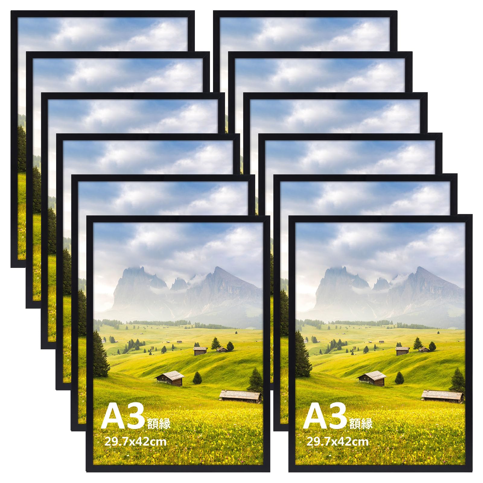 【まとめ買いで最大1000円OFFクーポン!】【送料無料】額縁 A3 フォトフレーム 賞状額 軽量 壁掛け タイプ 風景 ポスター 飾り セット 12枚 黒 8,940 ~