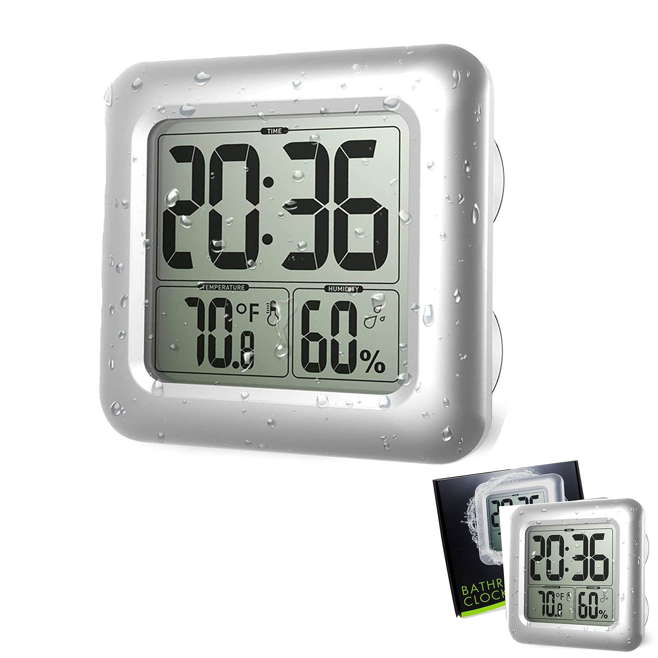 【温度計 湿度計デジタル兼用】時間だけではなく、温度湿度が表示されますのでお風呂の快適もこの時計で一目瞭然です!また、インフルエンザや風邪や熱中症などの予防対策に、お部屋の乾燥チェックでお肌の潤いを保つのに役立ちます。 本温湿度計デジタルの操作が簡単、場所も選びません、ご家族やご友人へのギフトに最適な防水温湿度時計です。 【温度/湿度/時間表示】表示やすい画面に温度と湿度と時間を表示してくれるデジタル温湿度計。 温度計と湿度計が一緒になっているから室内の空調管理がしやすく。 温湿度計は、温度と湿度を同時に確認でき、すぐに室内環境を把握して対策を講じることができます。 熱中症・風邪・インフルエンザ・乾燥肌・カビの予防などの目安としてもお使いいただけます。 赤ちゃんやお年寄り、ペットなどがいるご家庭にもおすすめです。 【温湿度計防水仕様必須】防滴レベルはIP45なので、お風呂やキッチンなど水滴のかかる水回り周辺で大活躍します。 理想的な防水性の大型計は、バスルームやシャワールームの鏡、キッチンでの使用にぴったり。 【本デジタル温湿度計三つ固定モードオプション】この防水時計は卓上置き、吊り穴で壁掛け、吸盤で貼り付けという固定モードがあります。 背面に4つの強力な吸盤を表面平滑のガラス、タイル、鏡に吸着できます。 【本デジタル温湿度計三つ固定モードオプション】この防水時計は卓上置き、吊り穴で壁掛け、吸盤で貼り付けという固定モードがあります。 背面に4つの強力な吸盤を表面平滑のガラス、タイル、鏡に吸着できます。 【LCD大画面温湿度計】温度計のサイズ:長さ16.8*幅6*高16.8cm、1本単3電池で駆動(別売)温湿度計の重量:425g カラー:シルバー 約長さ11cmx高さ11cmの液晶画面、大きな数字で時間、温度、室内相対湿度が表示されます。 見やすくて相当離れたところからでもはっきりと表示がみえるデジタル温度湿度計です。 時間表示が12/24時間制で切替、温度表示(黙認℃単位)。 【温度計 湿度計 温湿度計 室温計品質保証】こちらの店舗で商品ご購入日から365日間の保証を提供いたします。 ご使用途中に万一故障等が生じました場合は、無料交換と払い戻しと対応しております、何時もお気軽にメールでご連絡してください、24時間以内に対応いたします。 【温度計 湿度計デジタル兼用】時間だけではなく、温度湿度が表示されますのでお風呂の快適もこの時計で一目瞭然です!また、インフルエンザや風邪や熱中症などの予防対策に、お部屋の乾燥チェックでお肌の潤いを保つのに役立ちます。 本温湿度計デジタルの操作が簡単、場所も選びません、ご家族やご友人へのギフトに最適な防水温湿度時計です。 【温度/湿度/時間表示】表示やすい画面に温度と湿度と時間を表示してくれるデジタル温湿度計。 温度計と湿度計が一緒になっているから室内の空調管理がしやすく。 温湿度計は、温度と湿度を同時に確認でき、すぐに室内環境を把握して対策を講じることができます。 熱中症・風邪・インフルエンザ・乾燥肌・カビの予防などの目安としてもお使いいただけます。 赤ちゃんやお年寄り、ペットなどがいるご家庭にもおすすめです。 【温湿度計防水仕様必須】防滴レベルはIP45なので、お風呂やキッチンなど水滴のかかる水回り周辺で大活躍します。 理想的な防水性の大型計は、バスルームやシャワールームの鏡、キッチンでの使用にぴったり。 【本デジタル温湿度計三つ固定モードオプション】この防水時計は卓上置き、吊り穴で壁掛け、吸盤で貼り付けという固定モードがあります。 背面に4つの強力な吸盤を表面平滑のガラス、タイル、鏡に吸着できます。 【本デジタル温湿度計三つ固定モードオプション】この防水時計は卓上置き、吊り穴で壁掛け、吸盤で貼り付けという固定モードがあります。 背面に4つの強力な吸盤を表面平滑のガラス、タイル、鏡に吸着できます。 【LCD大画面温湿度計】温度計のサイズ:長さ16.8*幅6*高16.8cm、1本単3電池で駆動(別売)温湿度計の重量:425g カラー:シルバー 約長さ11cmx高さ11cmの液晶画面、大きな数字で時間、温度、室内相対湿度が表示されます。 見やすくて相当離れたところからでもはっきりと表示がみえるデジタル温度湿度計です。 時間表示が12/24時間制で切替、温度表示(黙認℃単位)。 【温度計 湿度計 温湿度計 室温計品質保証】こちらの店舗で商品ご購入日から365日間の保証を提供いたします。 ご使用途中に万一故障等が生じました場合は、無料交換と払い戻しと対応しております、何時もお気軽にメールでご連絡してください、24時間以内に対応いたします。