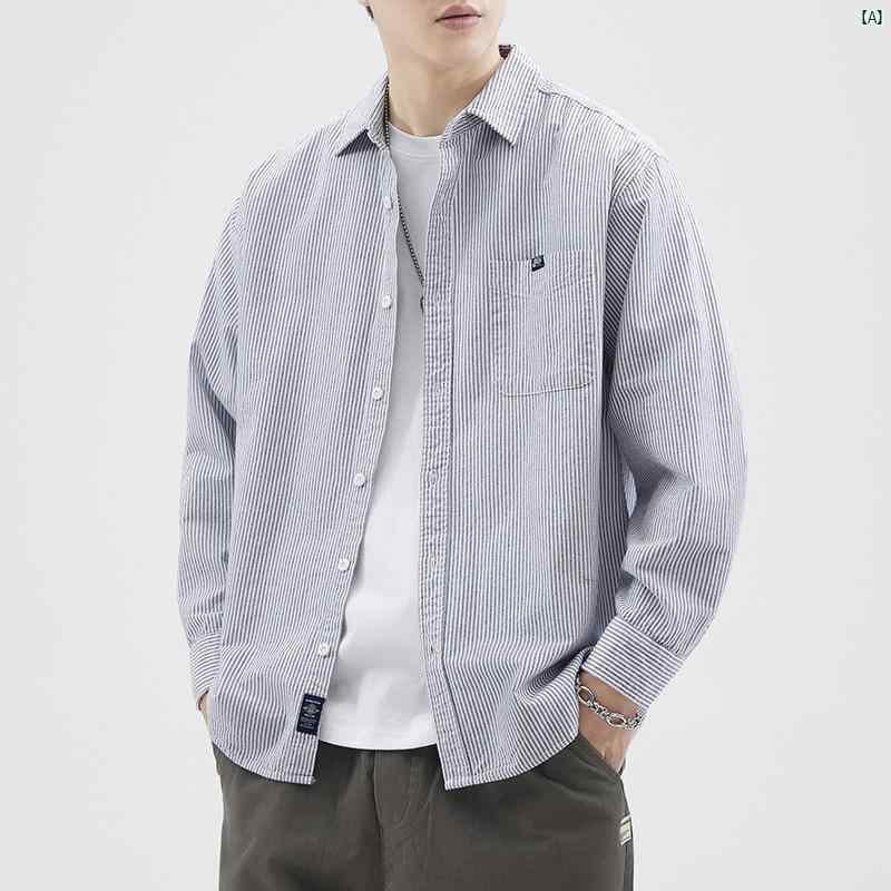 メンズカジュアル コート ハイエンド 春秋 男性用 シャツ 長袖 ストライプ 6,040 ~