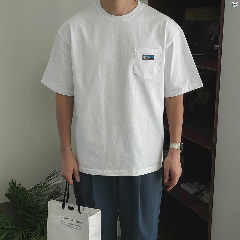 夏 韓国 メンズ Tシャツ 半袖 ラウンドネック ヘビー ホワイト 7,960 ~