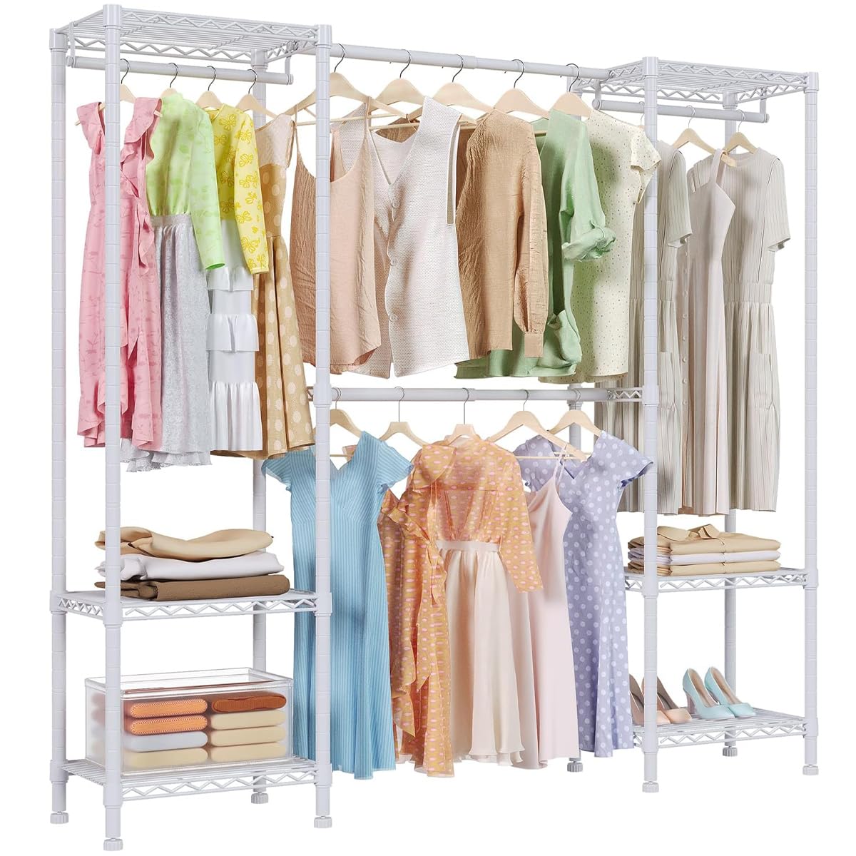 【まとめ買いで最大1000円OFFクーポン!】【送料無料】ハンガーラック 大容量 伸縮 幅148~188cm ワードローブ メタルラック 頑丈 洋服ラック洋服掛け 組み立て簡単 衣類収納 高さ調節 省スペース おしゃれ ハンガーかけ コートハンガー 洋服収納 (ホワイト 幅148-188×奥行40 14,011 ~