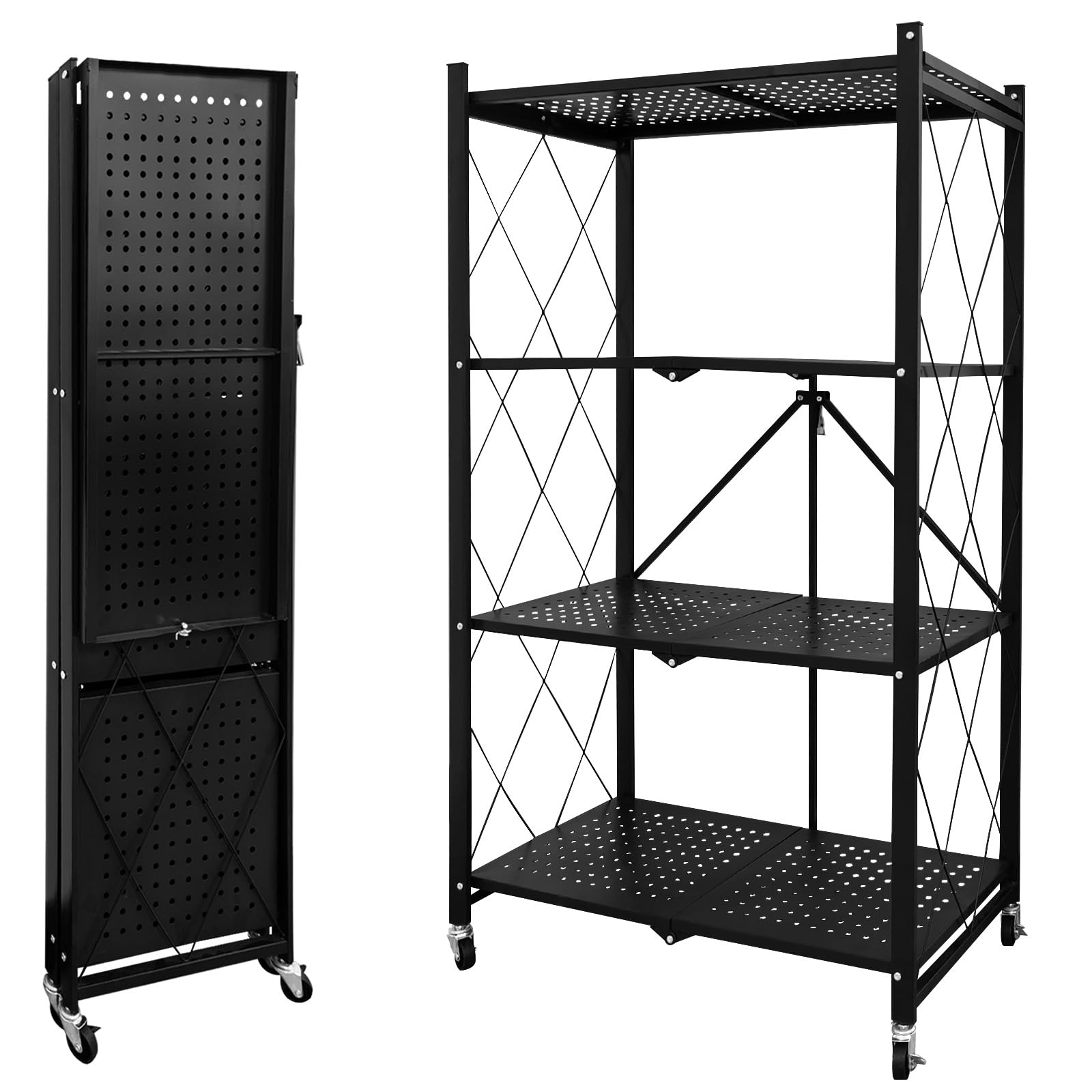【まとめ買いで最大1000円OFFクーポン!】【送料無料】折り畳みラック 折りたたみ 折り畳み メタルラック 収納ラック 折り畳み棚 オープンラック 折りたたみ式 360°キャスター付き 組立簡単 移動便利 家庭用収納 キッチン 寝室 (ブラック 4段) 8,586 ~