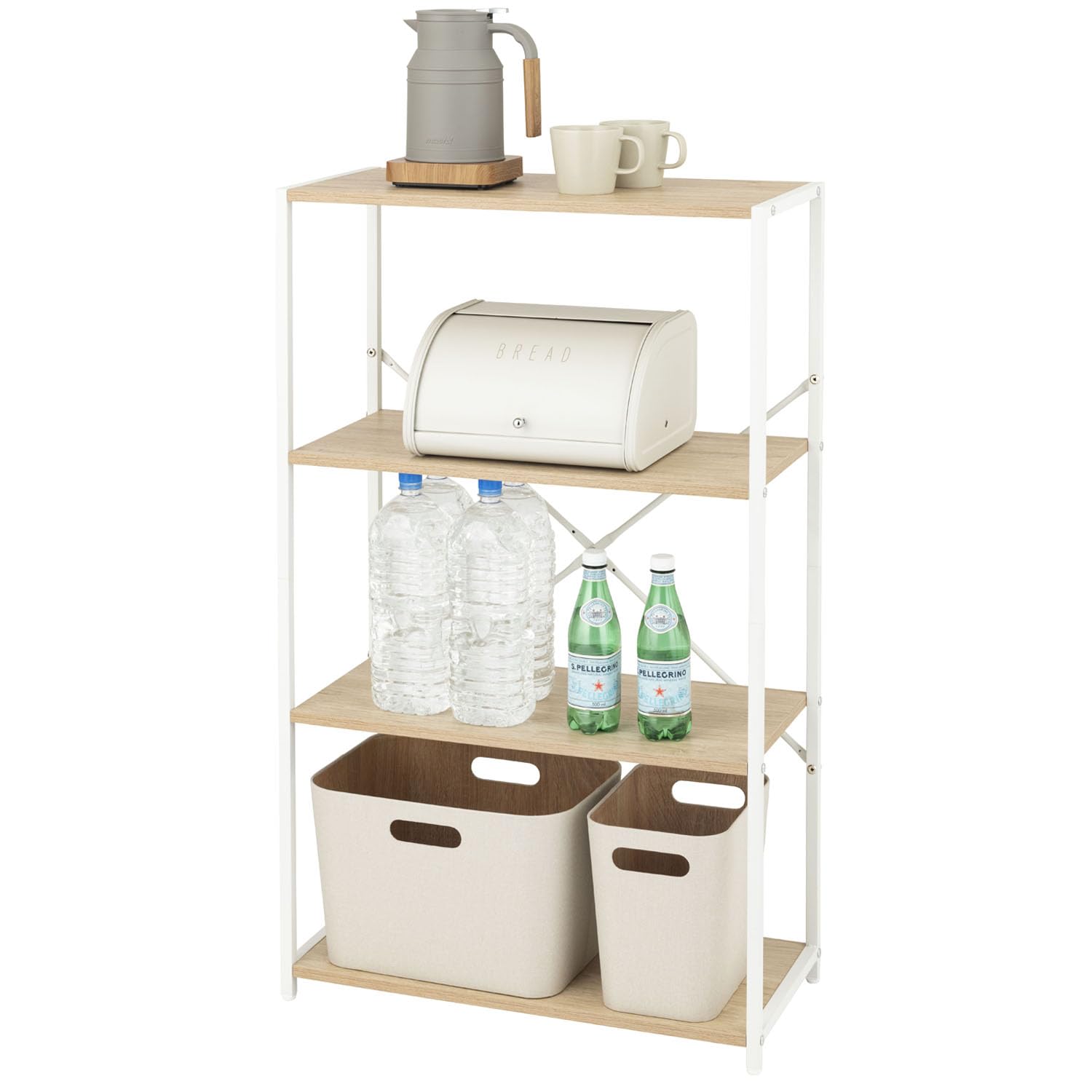 【2026年キッチンラック棚仕様】 サイズ(約):幅80×奥行40×高さ100cm(アジャスター含む)、本体重量(約):9.7kg、全体耐荷重(約):70kg/天板50kg・中棚20Kg、梱包サイズ(約):87×45×13cm、吊り下げ用フック4個付きます。 ゴミ箱上の「もったいない空間」を有効活用できるラックが登場。 キッチンで作業台やゴミ箱上ラック・食器棚のような収納ラックです。 【5段階高さ調整可能な可動棚】 収納物に合わせ、棚の高さを13cmピッチで5段階調節できます。 棚板はフック式のため、サイドバーに掛けるだけで、工具は不要です。 下部スペースにダストボックスを置いたり、中棚を外して小型冷蔵庫の上に設置したりしてもOKです。 デッドスペースを効率的に活用できます。 ■高さのある大型電子レンジにも対応するキッチン棚です。 【水や傷に強い耐荷重70Kg天板】 水と傷に強く、耐久性の高いメラミン化粧板を使っています。 水をこぼしても、すぐ拭き取れます。 幅80cmで、30Lのゴミ箱を3個置けるちょうどいいサイズです。 高品質材料使用し、大型の家電でも安心で置けます。 電子レンジ、オーブントースターや炊飯器、コーヒーメーカー、食洗機、電気ポットなどの様々な家電収納可能です。 【4つのフック付き・使い勝手抜群のサイドフレーム】付属の 4 つフックを利用すれば、サイドフレームにタオルやミトンなどをしっかり収納できます。 さらに、マグネットを取り付けることも可能です。 スプレーボトル、タオル、カッティングボード、ミトンなどを手軽に掛けて、すぐにご利用いただけます。 引っ掛け収納において大活躍し、小物やキッチンツールの整理はもちろん、ポリ袋ストックの整理にも便利です。 【細かいところにこだわり】■ 背面や側面が板などで遮られていないため、配線コードの整理が便利で、邪魔になりません。 ■ アジャスターを付けて、床の微妙な段差や傾斜に対応できるようにしました。 ガタつきを防止し、安定して置けます。 ■ 背面にクロスバー補強を行っているので、横揺れを軽減し、快適にご利用いただけます。 【組み立て簡単、お手入れもラク】女性一人でも簡単に組み立てられる、スリムでおしゃれなキッチン収納ゴミ箱ラック。 分かりやすい取り扱い説明書と組み立てに必要な工具が付属しております。 ◎組み立て時間約 20 分。 ※弊社デザイナーのオリジナル作品。 ◆保証期間:1 年。 電話対応:月〜金8:00〜12:00(土日祝休み)?美しい木目模様のウッドとスチールを組み合わせた雰囲気のあるデザインです。 北欧系やモダンなど、どんなお部屋にも素敵に馴染む人気のキッチンカウンターです。 【2026年キッチンラック棚仕様】 サイズ(約):幅80×奥行40×高さ100cm(アジャスター含む)、本体重量(約):9.7kg、全体耐荷重(約):70kg/天板50kg・中棚20Kg、梱包サイズ(約):87×45×13cm、吊り下げ用フック4個付きます。 ゴミ箱上の「もったいない空間」を有効活用できるラックが登場。 キッチンで作業台やゴミ箱上ラック・食器棚のような収納ラックです。 【5段階高さ調整可能な可動棚】 収納物に合わせ、棚の高さを13cmピッチで5段階調節できます。 棚板はフック式のため、サイドバーに掛けるだけで、工具は不要です。 下部スペースにダストボックスを置いたり、中棚を外して小型冷蔵庫の上に設置したりしてもOKです。 デッドスペースを効率的に活用できます。 ■高さのある大型電子レンジにも対応するキッチン棚です。 【水や傷に強い耐荷重70Kg天板】 水と傷に強く、耐久性の高いメラミン化粧板を使っています。 水をこぼしても、すぐ拭き取れます。 幅80cmで、30Lのゴミ箱を3個置けるちょうどいいサイズです。 高品質材料使用し、大型の家電でも安心で置けます。 電子レンジ、オーブントースターや炊飯器、コーヒーメーカー、食洗機、電気ポットなどの様々な家電収納可能です。 【4つのフック付き・使い勝手抜群のサイドフレーム】付属の 4 つフックを利用すれば、サイドフレームにタオルやミトンなどをしっかり収納できます。 さらに、マグネットを取り付けることも可能です。 スプレーボトル、タオル、カッティングボード、ミトンなどを手軽に掛けて、すぐにご利用いただけます。 引っ掛け収納において大活躍し、小物やキッチンツールの整理はもちろん、ポリ袋ストックの整理にも便利です。 【細かいところにこだわり】■ 背面や側面が板などで遮られていないため、配線コードの整理が便利で、邪魔になりません。 ■ アジャスターを付けて、床の微妙な段差や傾斜に対応できるようにしました。 ガタつきを防止し、安定して置けます。 ■ 背面にクロスバー補強を行っているので、横揺れを軽減し、快適にご利用いただけます。 【組み立て簡単、お手入れもラク】女性一人でも簡単に組み立てられる、スリムでおしゃれなキッチン収納ゴミ箱ラック。 分かりやすい取り扱い説明書と組み立てに必要な工具が付属しております。 ◎組み立て時間約 20 分。 ※弊社デザイナーのオリジナル作