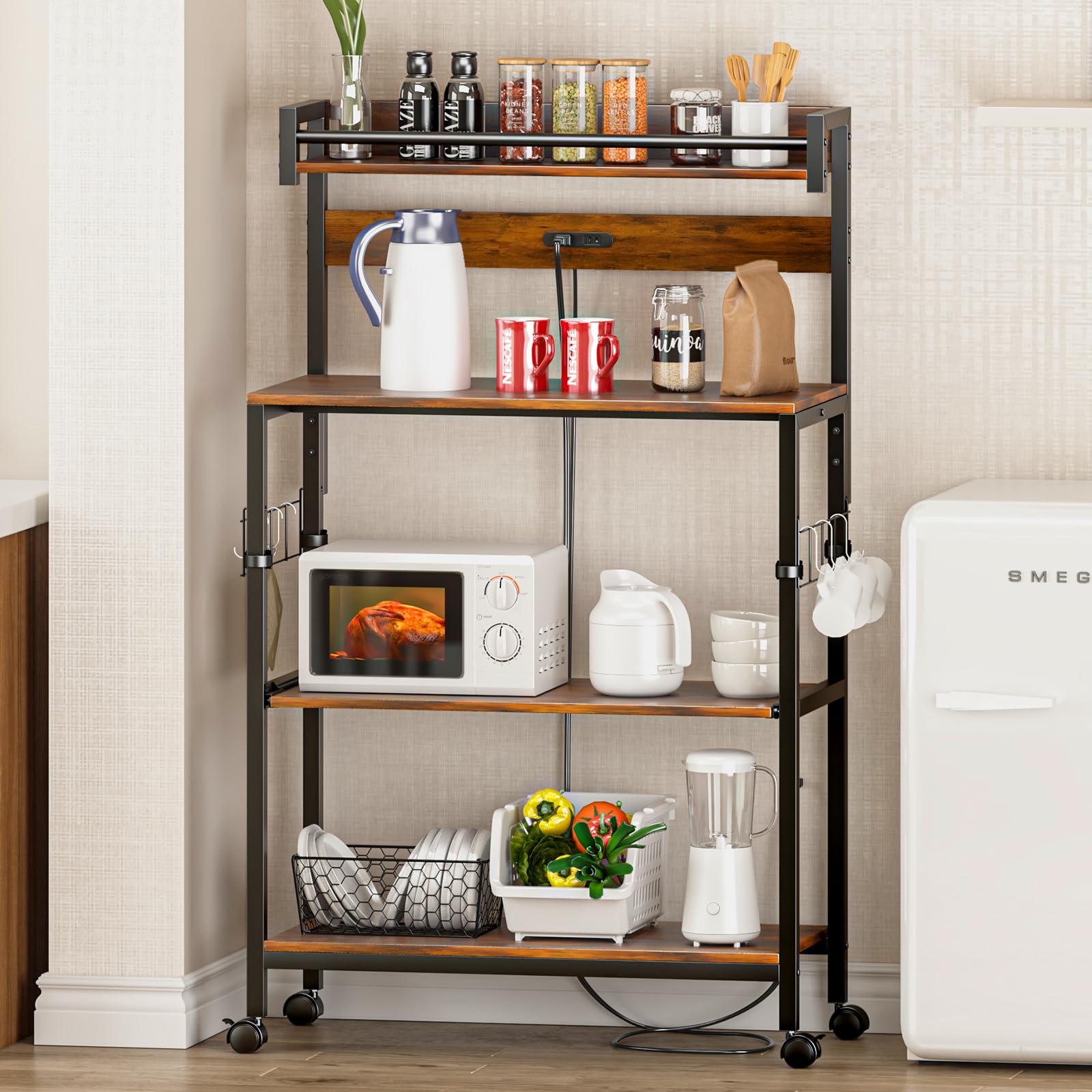 【まとめ買いで最大1000円OFFクーポン!】【送料無料】キッチンベイカーラック 幅80奥行き39高さ130cm 2口コンセント付き 棚板レールでスライド式 Sフック5個 ストッパーキャスター2個 アジャスター?フェルト付き キッチンラック レンジラック オープンラック プリンター台 総 9,085 ~