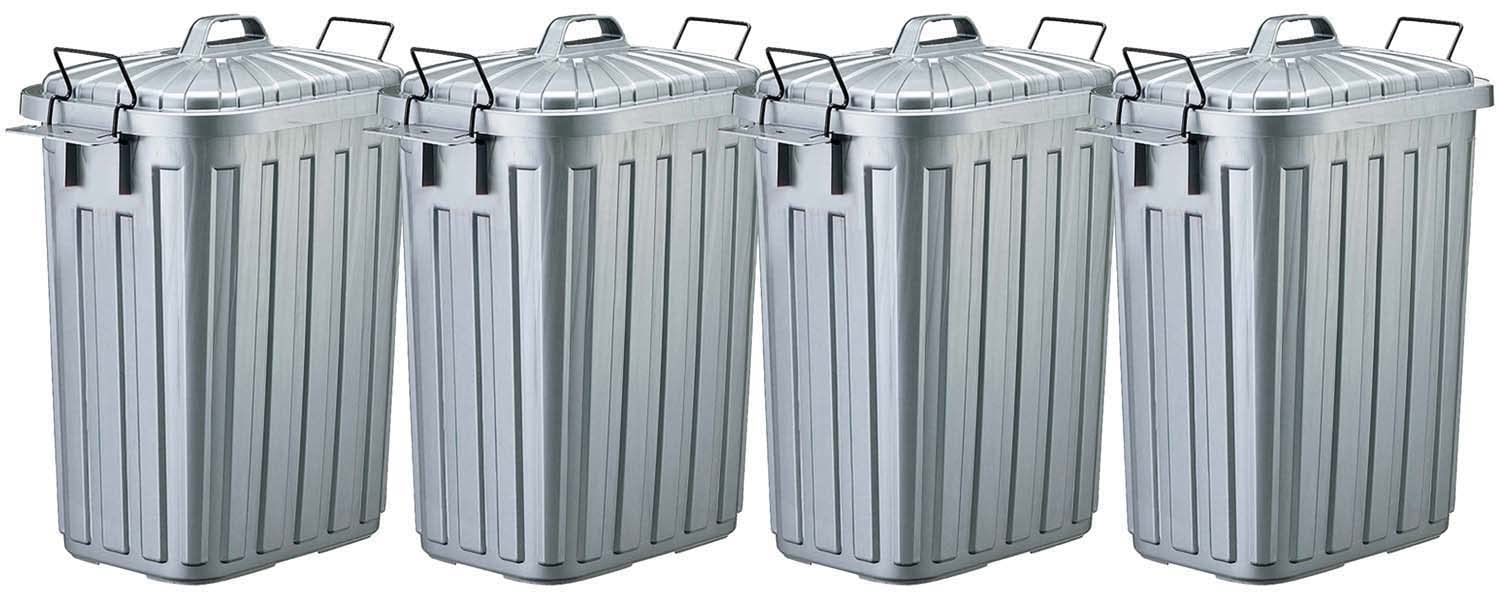 【まとめ買いで最大1000円OFFクーポン!】【送料無料】スーパーカン ゴミ箱 屋外 仕様 角型 60 ふた付き グレー 4個セット メタリック L-113C 日本製 12,927 ~