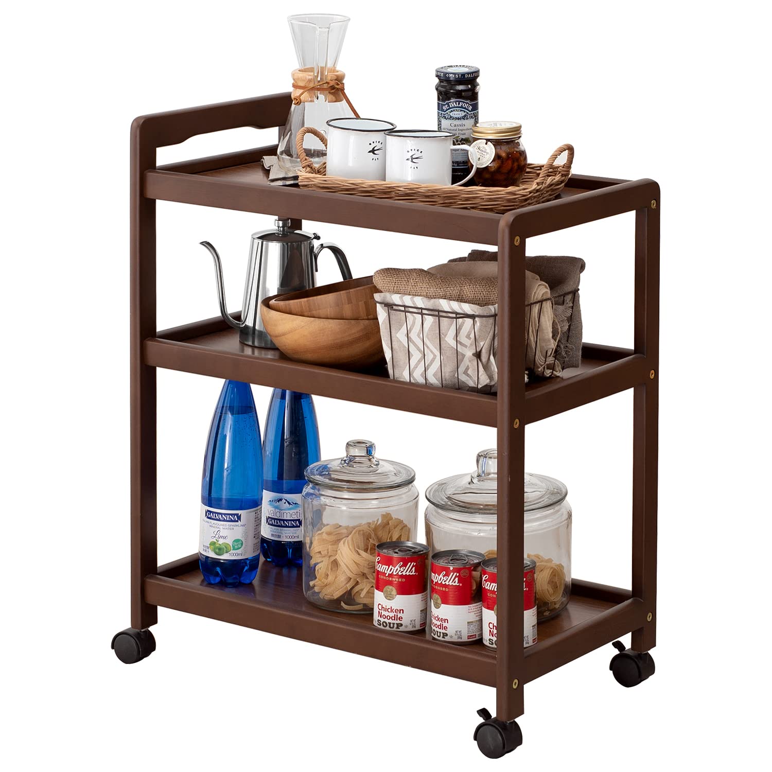 【まとめ買いで最大1000円OFFクーポン!】【送料無料】キッチンワゴン 隙間 収納 カート 3段 天然木 耐荷重 15kg 大容量 キャスター 取っ手 付き 幅59 奥行34 高さ72.5 ブラウン VW-7977BR 7,495 ~