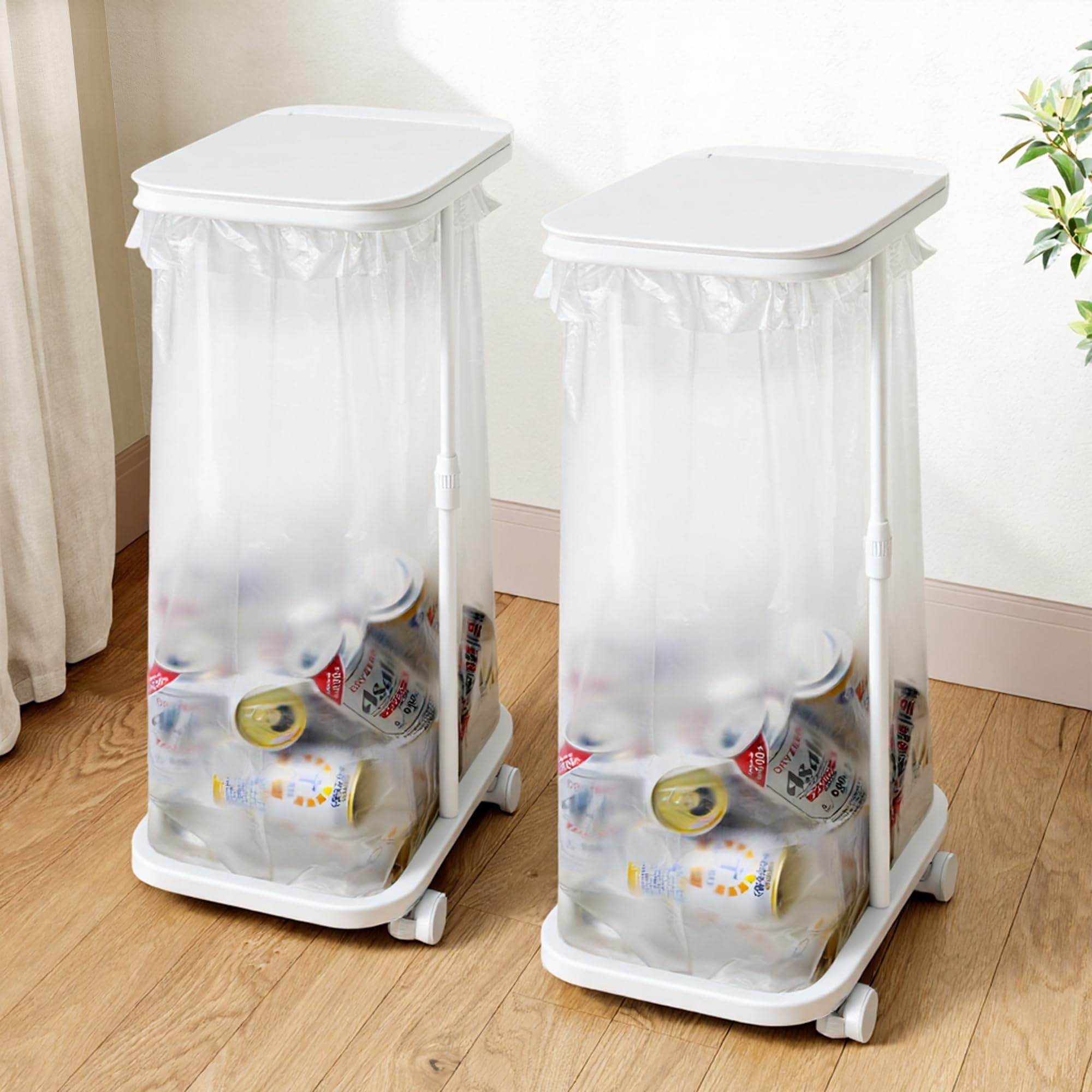 ?【容量を自由に調整可能】この商品の高さは47~78cm(キャスター・アジャスター高さは別)の間で段階なく自由調節でき、ゴミの収容量を拡大可能で、20L〜90Lのゴミ袋に対応し、便利性に優れています。 ゴミは日々の生活で驚くほど溜まりますが、回収日しか捨てられないルールがあるので、箱型のゴミ箱と違ってゴミ袋の最大容量まで使えます。 このゴミ袋ホルダーを使うと、使い勝手がすごくいいです!?【耐久性に優れた高強度蓋】この蓋は、家電や電子機器で広く採用されるABS樹脂で作られています。 PPプラスチック(ポリプロピレン)よりも丈夫で、強い衝撃にも強く、長期間使用しても劣化しにくい特徴があります。 さらに、金属よりも軽量です。 子供でも安全に開け閉めできます。 蓋の密閉性が高く、夏場でも臭い漏れの心配がありません。 また耐湿性に優れ、台所や洗面所など湿度の高い環境でも使用できます。 ?【ゴミ分別ステッカー付き】可燃ごみ・不燃ごみ・ペットボトル・びん・かん・プラスチックの6種類セットです。 色分けされていてイラスト付きのため、子供にも伝わりやすいデザインです。 個人利用、共有ゴミ置き場、事業所などのところで活躍しています。 そして、ステッカーが防水加工されているので、濡れても問題ありません。 ?【シンプルデザインで掃除が楽になります 】ゴミ箱の汚れが気になりませんか?本製品は壁なしで袋をかけるだけです。 蓋が汚れたら水で直接洗えるので、手軽に清潔に保てます。 キャスターとフットパッドが付属するので場所に応じて設置ができます。 キャスターがないと、掃除機を使うなどで動かすのに不便です。 360度キャスター付きで、スイスイ移動できてとても便利です。 この商品を使って、ゴミ箱の汚れストレスから解放!?【高品質で耐久性に優れています】フレームが上質なスチールを採用しており、高温で焼付塗装を施しています。 水や水蒸気にも強くキッチン用品に最適な材質です。 錆、腐食などを防止でき、耐久性が優れています。 変形や壊れ等の心配なくて安定です。 安心にご使用できます。 ?【2年間の品質保証】:お買い上げ日から2年間、製品に万一の不具合が発生した場合にはアカウントサービス内(注文履歴、出品者に連絡する)から、ご連絡くださいますようお願い申し上げます。 早急に、商品の返品やご交換等の対応をさせていただきます。 ?【容量を自由に調整可能】この商品の高さは47~78cm(キャスター・アジャスター高さは別)の間で段階なく自由調節でき、ゴミの収容量を拡大可能で、20L〜90Lのゴミ袋に対応し、便利性に優れています。 ゴミは日々の生活で驚くほど溜まりますが、回収日しか捨てられないルールがあるので、箱型のゴミ箱と違ってゴミ袋の最大容量まで使えます。 このゴミ袋ホルダーを使うと、使い勝手がすごくいいです! ?【耐久性に優れた高強度蓋】この蓋は、家電や電子機器で広く採用されるABS樹脂で作られています。 PPプラスチック(ポリプロピレン)よりも丈夫で、強い衝撃にも強く、長期間使用しても劣化しにくい特徴があります。 さらに、金属よりも軽量です。 子供でも安全に開け閉めできます。 蓋の密閉性が高く、夏場でも臭い漏れの心配がありません。 また耐湿性に優れ、台所や洗面所など湿度の高い環境でも使用できます。 ?【ゴミ分別ステッカー付き】可燃ごみ・不燃ごみ・ペットボトル・びん・かん・プラスチックの6種類セットです。 色分けされていてイラスト付きのため、子供にも伝わりやすいデザインです。 個人利用、共有ゴミ置き場、事業所などのところで活躍しています。 そして、ステッカーが防水加工されているので、濡れても問題ありません。 ?【シンプルデザインで掃除が楽になります 】ゴミ箱の汚れが気になりませんか?本製品は壁なしで袋をかけるだけです。 蓋が汚れたら水で直接洗えるので、手軽に清潔に保てます。 キャスターとフットパッドが付属するので場所に応じて設置ができます。 キャスターがないと、掃除機を使うなどで動かすのに不便です。 360度キャスター付きで、スイスイ移動できてとても便利です。 この商品を使って、ゴミ箱の汚れストレスから解放! ?【高品質で耐久性に優れています】フレームが上質なスチールを採用しており、高温で焼付塗装を施しています。 水や水蒸気にも強くキッチン用品に最適な材質です。 錆、腐食などを防止でき、耐久性が優れています。 変形や壊れ等の心配なくて安定です。 安心にご使用できます。 ?【2年間の品質保証】:お買い上げ日から2年間、製品に万一の不具合が発生した場合にはアカウントサービス内(注文履歴、出品者に連絡する)から、ご連絡くださいますようお願い申し上げます。 早急に、商品の返品やご交換等の対応をさせていただきます。