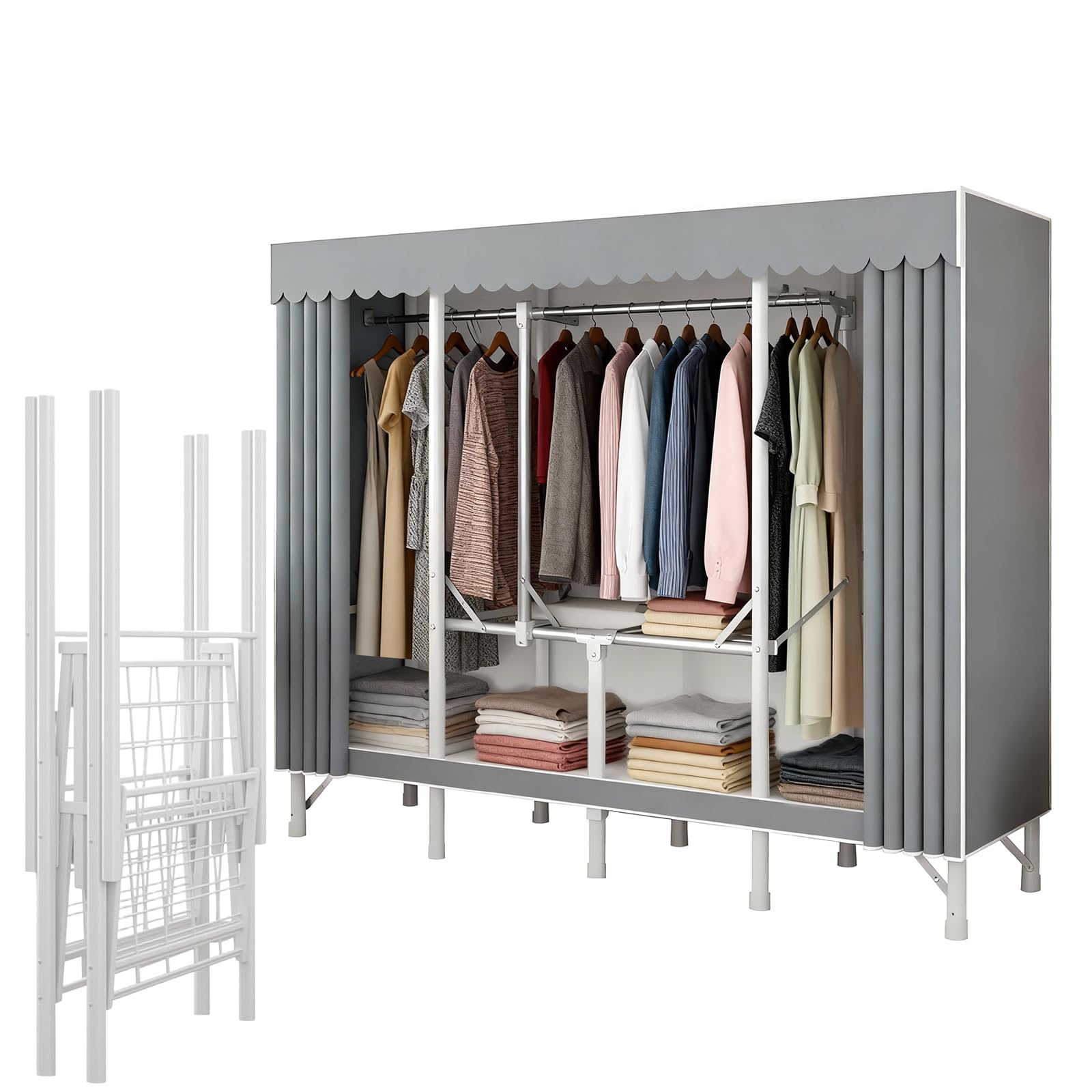 ??サイズと素材:約幅210×奥行48×高さ172cm。 大容量ワードローブで、シングルからカップルまで快適に利用できます。 頑丈な金属フレームに、防塵性に優たカバーを採用。 ホコリが付着しにくく清潔を保ちます。 ??折りたたみデザイン:折りたたみ式なので、面倒な設置が不要で、一人でも自宅で簡単に設置できます。 設置が苦手な方にも、このデザインはとても親切で、収納も簡単なので、ワンルームにお住まいの方におすすめです。 ??完全防塵:ない360°密閉設計。 衣類を常に清潔な状態で保管でき、防塵効果が持続します。 ダストカバーは汚れたら取り外してで洗うこともでき、シンプルで便利だ。 ??優れた収納力と耐荷重性:コンパクトな寝室用収納。 中央支柱と両サイドの棚で収納力アップ。 折りたたみ衣類や雑貨の整理に最適で、上部吊り下げスペースはハンガー掛けに便利です。 ??携帯性と軽量:金属材料で作られ、丈夫で耐久性があり、同時に扱いやすく、軽量で組み立てが簡単です。 オープンデザインで中身が見やすく、必要な服や小物がサッと取り出せます。 家庭はもちろん、オフィスや学生寮、衣装部屋など多様なシーンで活躍します。 ??サイズと素材:約幅210×奥行48×高さ172cm。 大容量ワードローブで、シングルからカップルまで快適に利用できます。 頑丈な金属フレームに、防塵性に優たカバーを採用。 ホコリが付着しにくく清潔を保ちます。 ??折りたたみデザイン:折りたたみ式なので、面倒な設置が不要で、一人でも自宅で簡単に設置できます。 設置が苦手な方にも、このデザインはとても親切で、収納も簡単なので、ワンルームにお住まいの方におすすめです。 ??完全防塵:ない360°密閉設計。 衣類を常に清潔な状態で保管でき、防塵効果が持続します。 ダストカバーは汚れたら取り外してで洗うこともでき、シンプルで便利だ。 ??優れた収納力と耐荷重性:コンパクトな寝室用収納。 中央支柱と両サイドの棚で収納力アップ。 折りたたみ衣類や雑貨の整理に最適で、上部吊り下げスペースはハンガー掛けに便利です。 ??携帯性と軽量:金属材料で作られ、丈夫で耐久性があり、同時に扱いやすく、軽量で組み立てが簡単です。 オープンデザインで中身が見やすく、必要な服や小物がサッと取り出せます。 家庭はもちろん、オフィスや学生寮、衣装部屋など多様なシーンで活躍します。