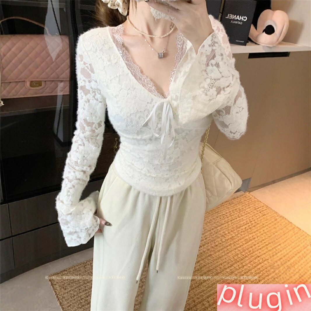 野媛?欲?蕾??花V??袖上衣女秋冬加?加厚性感喇叭袖打底衫 4,424 ~