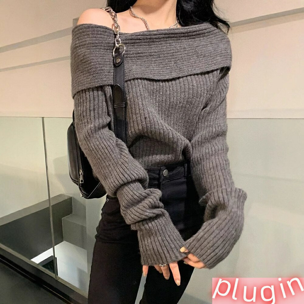野媛慵??一字肩毛衣女秋冬季露肩小?高?感一字???上衣?袖 3,888 ~