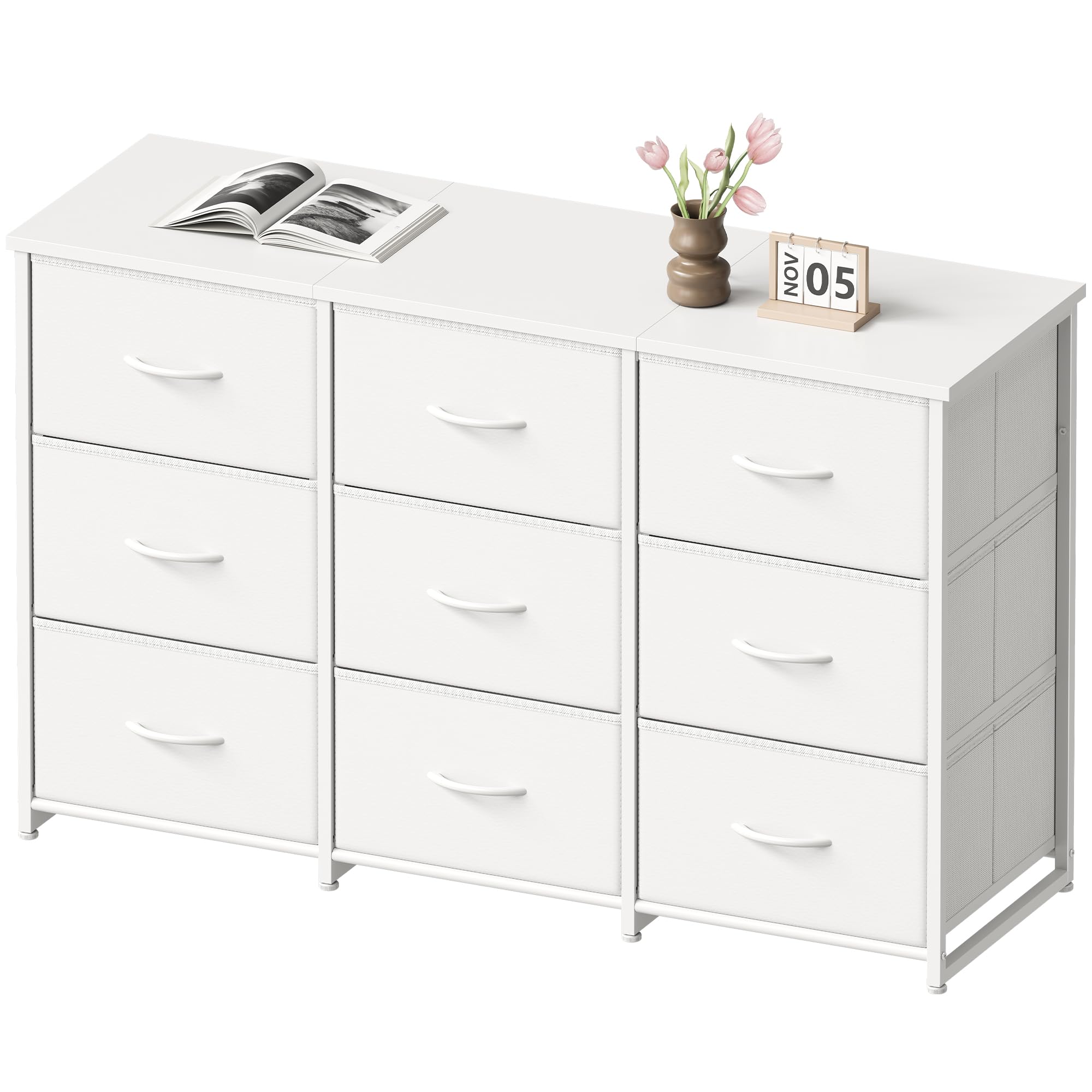 【まとめ買いで最大1000円OFFクーポン!】【送料無料】チェスト タンス 洋服収納 幅120cm 布製引き出し大容量収納 3段9杯 組立簡単 衣類収納 タンス おもちゃ収納 箪笥 本棚 衣装ケース 脱衣所 寝室 リビング 収納 省スペース 収納家具 白い 11,589 ~