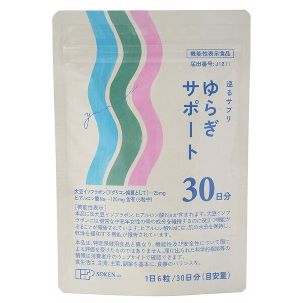 創健社 巡るサプリ ゆらぎサポートは、大豆イソフラボンとヒアルロン酸Naを配合した機能性表示食品です。 健常な中高年女性の骨の成分を維持するのに役立つ機能、肌の水分を保持し乾燥を緩和する機能が報告されています。 機能性関与成分(6粒中) 大豆イソフラボン 25mg(アグリコン換算として)中高年女性の骨の成分を維持するのに役立つ機能があることが 報告されています。 ヒアルロン酸Na 120mg 肌の水分を保持し、乾燥を緩和する機能が報告されています [機能性表示]本品には大豆イソフラボン、ヒアルロン酸Naが含まれます。 大豆 イソフラボンには健常な中高年女性の骨の成分を維持するのに役立つ機能が あることが報告されています。 ヒアルロン酸Naには、肌の水分を保持し、乾燥 を緩和する機能が報告されています。 <創健社> 半世紀を超える歴史を持つこだわりの食品会社です。 創業の1968年当時は、高度経済成長期の中、化学合成された香料・着色料・保存料などが数多く開発され、大量生産のための工業的製法の加工食品が急速に増えていました。 創業者中村隆男は、「食べもの、食べ方は、必ず生き方につながって来る。 食生活をととのえることは、生き方をととのえることである。 」と提唱し、変わり行く日本の食環境に危機感を覚え、より健康に繋がる食品を届けたいと願って創健社を立ち上げました。 ■商品名:創健社 巡るサプリ ゆらぎサポート 大豆イソフラボン ヒアルロン酸Na ■内容量:45g(250mg×180粒) ■原材料:還元麦芽糖水飴(国内製造)、乳糖発酵物(乳糖発酵物、乳糖)(乳成分を含む)、大豆胚芽抽出物(大豆を含む)、コラーゲンペプチド(ゼラチンを含む)、酵母ペプチド、チェストベリーエキス末/貝殻未焼成カルシウム、セルロース、ヒアルロン酸ナトリウム、酸化マグネシウム、カルナウバロウ ■お召し上がり方:1日6粒を目安に水またはぬるま湯でお召し上がりください。 ■メーカー或いは販売者:株式会社創健社 ■賞味期限:製造より720日以内のものを発送 ■保存方法:直射日光・高温多湿を避けて保存してください。 ■区分:健康食品(機能性表示食品) ■原産国/製造国:日本 ■使用上のご注意: ・体調に異変を感じた際は、速やかに摂取を中止し、医師に相談してください。 ・本品は、特定保健用食品と異なり、機能性及び安全性について国による評価を受けたものでは ありません。 届け出られた科学的根拠等の情報は消費者庁のウェブサイトで確認できます。 食生活は、主食、主菜、副菜を基本に、食事のバランスを ・本品製造工場では「卵」・「小麦」・「落花生」・「えび」・「かに」・「くるみ」を含む製品を生産しています。 。 食生活は、主食、主菜、副菜を基本に、食事のバランスを。 ・一日摂取目安量を守ってください。 ・乳幼児の手の届かないところに置いてください。 ・イソフラボンを含む健康食品等との併用は避け、過剰摂取にならないようご注意ください。 ・植物エキスを使用しているため、色調にバラツキが生じる場合がありますが、品質には問題ありません。 ・開封後は、チャックをしっかり閉めて保存してください。 ・医薬品ではありません。 本品は疾病に罹患している者、妊産婦(妊娠を計画している者を含む。 )及び授乳婦を対象に開発された食品ではありません。 疾病に罹患している場合は医師に、医薬品を服用している場合は医師、薬剤師に摂取について相談してください。 【免責事項】 ※記載の賞味期限は製造日からの日数です。 実際の期日についてはお問い合わせください。 ※自社サイトと在庫を共有しているためタイミングによっては欠品、お取り寄せ、キャンセルとなる場合がございます。 ※商品リニューアル等により、パッケージや商品内容がお届け商品と一部異なる場合がございます。 ※メール便はポスト投函です。 代引きはご利用できません。 厚み制限(3cm以下)があるため簡易包装となります。 外装ダメージについては免責とさせていただきます。