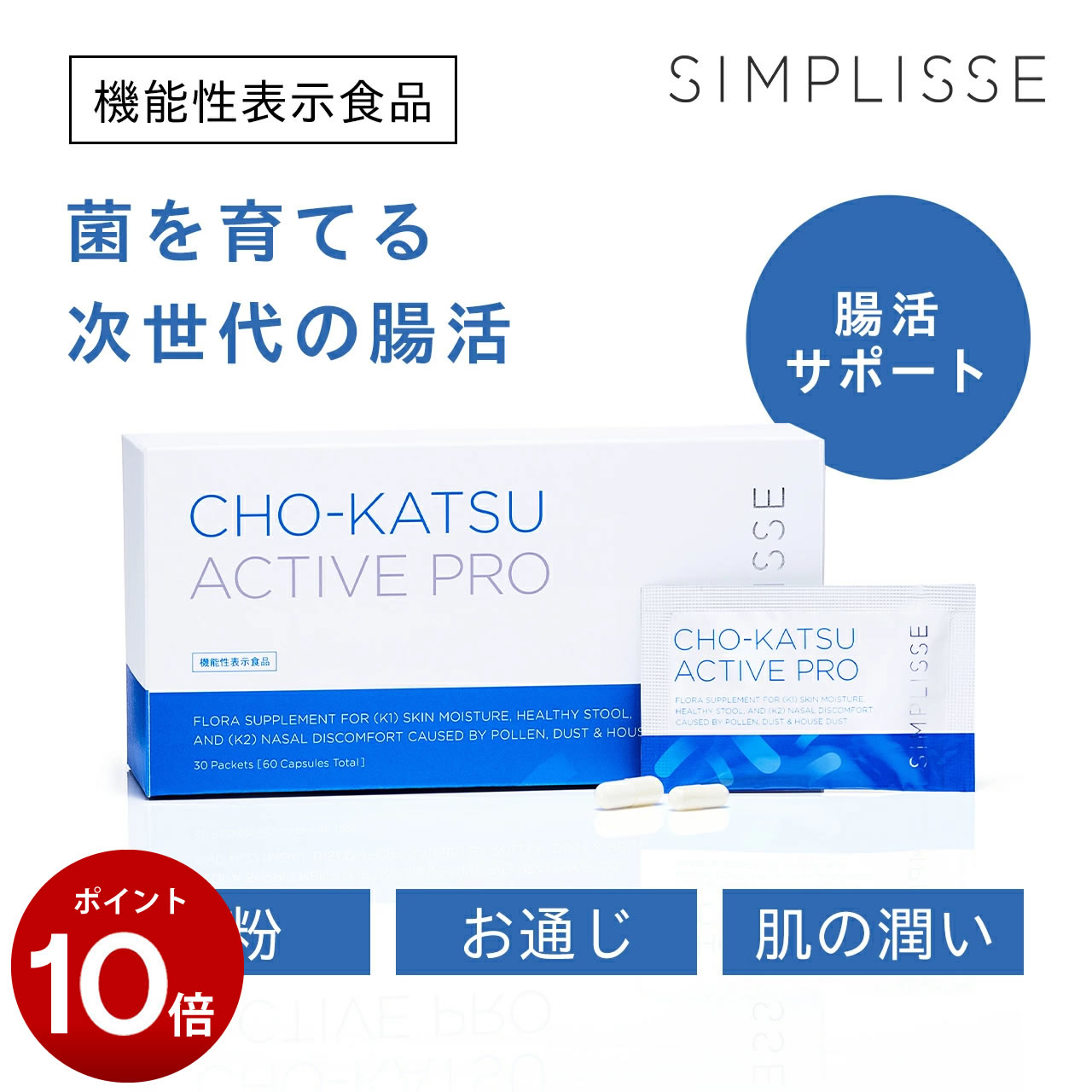 【お買い物マラソン限定!ポイント10倍】 【日本製】 シンプリス チョーカツ アクティブ プロ 30包 サプリメント 腸活 花粉 お通じ 便通 ほこり ハウスダスト くしゃみ 鼻づまり 鼻水 肌の潤い 植物性乳酸菌 個包装 安心 安全 着色料 香料 保存料 甘味料フリー 7,560 ~