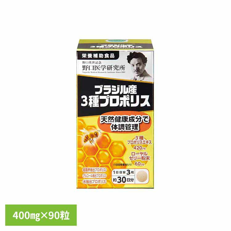 ミツバチが巣を守るために自ら作り出すプロポリス。 本品は、広大な自然林にある多様な植物の天然成分が凝縮されたプロポリスを3粒(1日目安量)あたり360mg配合し、女王バチの栄養源となる健康成分ローヤルゼリーを加えました。 ※リニューアルに伴い、パッケージ・内容等予告なく変更する場合がございます。 予めご了承ください。 ●商品サイズ(cm)幅約5×奥行約5×高さ約9.1●商品重量約0.146kg●1日あたりの摂取目安量3粒●商品区分健康食品●原材料プロポリス抽出物(米粉、プロポリス抽出物)(国内製造)、還元麦芽糖水飴、還元パラチノース、でん粉、プロポリス抽出物(プロポリス抽出物、還元でん粉糖化物)、乾燥ローヤルゼリー、プロポリス超臨界抽出物、ガラクトオリゴ糖粉末、蜂蜜粉末、蜂の子粉末、花粉荷粉末/セルロース、加工デンプン、ステアリン酸Mg、二酸化ケイ素●成分・エネルギー…4.9kcal・たんぱく質…0.04g・脂質…0.06g・炭水化物…1.04g・食塩相当量…0.0005g●原産国:日本●アレルギー物質なし○広告文責:e-net shop株式会社(03-6706-4521)○メーカー(製造):野口医学○区分:日本製・健康食品(検索用:サプリ プロポリス 粒 錠剤 4562193141862)最強翌日配送対象商品に関するご案内 最強翌日配送対象商品・対象地域に該当する場合は最強翌日配送マークがご注文カゴ近くに表示されます。 最強翌日配送可能なお支払方法は【クレジットカード、代金引換、全額ポイント支払い】のみとなります。 下記の場合は最強翌日配送対象外となります。 ・15点以上ご購入いただいた場合 ・時間指定がある場合 ・ご注文時備考欄にご記入がある場合 ・決済処理にお時間を頂戴する場合 ・郵便番号や住所に誤りがある場合 ・最強翌日配送対象外の商品とご一緒にご注文いただいた場合 ・お届け先住所文字数が40文字以上の場合 ブラジル産3種プロポリス90T(400mg×90粒) サプリ プロポリス 粒 錠剤 【B】 2,786 ~