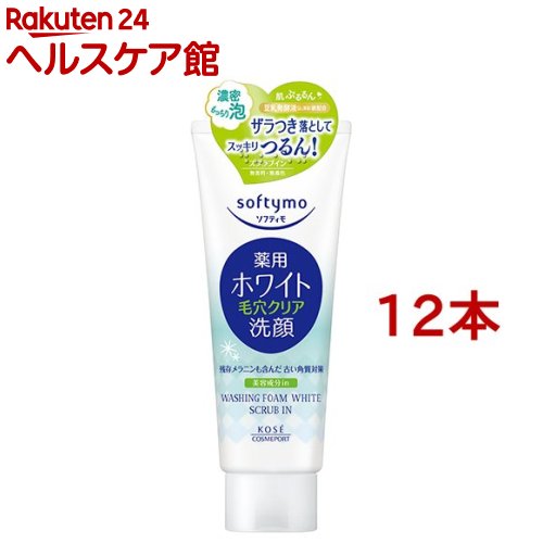 お店TOP>化粧品>クレンジング・洗顔>洗顔>保湿 洗顔>ソフティモ>ソフティモ 薬用洗顔フォーム ホワイト スクラブイン (150g*12本セット)商品区分:医薬部外品【ソフティモ 薬用洗顔フォーム ホワイト スクラブインの商品詳細】●クリーミィな泡が毛穴につまった皮脂や汚れとともに黒ずみやザラつきを落とし、スッキリ・つるつるの肌に洗い上げます。 ●豆乳発酵液を配合【販売名】ソフティモ ホワイト 薬用洗顔フォーム(S) e【使用方法】・手のひらに適量(約2cm)をとり、水かぬるま湯でよく泡立ててから洗顔し、そのあと充分にすすいでください。 【成分】有効成分・・・グリチルリチン酸ジカリウムその他の成分・・・精製水、ミリスチン酸、濃グリセリン、ステアリン酸、水酸化カリウム、ラウリン酸、ポリエチレングリコール1500、ポリエチレングリコール300、ポリオキシエチレンラウリルエーテル(7E.O.)、結晶セルロース、L-アスコルビン酸硫酸エステル二ナトリウム、豆乳発酵液、N-ラウロイル-L-グルタミン酸ナトリウム、Nε-ラウロイル-L-リジン、シルク末、ジステアリン酸エチレングリコール、ミリストイルメチルタウリンナトリウム、ヤシ油脂肪酸メチルタウリンナトリウム、親油型モノステアリン酸グリセリル、無水エタノール、エチルパラベン、メチルパラベン※は有効成分、無印はその他の成分【注意事項】・日やけ後は、肌の赤みやひりつきがおさまってからお使いください。 ・高温の場所や、日のあたる場所には置かないでください。 ・目に入らないようご注意ください。 目に入ったときには、こすらずに、すぐに洗い流してください。 目に異物感が残る場合は、眼科医にご相談ください。 ・ご使用後は、キャップをきちんとしめてください。 ・お肌に異常が生じていないかよく注意して使用してください。 ・傷やはれもの・湿しん等、お肌に異常のあるときはお使いにならないでください。 ・使用中、赤味・はれ・かゆみ・刺激、色抜け(白斑等)や黒ずみ等の異常があらわれた場合は、使用を中止し、皮ふ科専門医等へご相談ください。 そのまま使用を続けますと症状が悪化することがあります。 【原産国】日本【ブランド】ソフティモ【発売元、製造元、輸入元又は販売元】コーセーコスメポート※説明文は単品の内容です。 リニューアルに伴い、パッケージ・内容等予告なく変更する場合がございます。 予めご了承ください。 (softymo)・単品JAN:4971710390247コーセーコスメポート103-0027 東京都中央区日本橋1-16-110800-222-2202広告文責:楽天グループ株式会社電話:050-5306-1825[クレンジング・洗顔/ブランド:ソフティモ/] ソフティモ 薬用洗顔フォーム ホワイト スクラブイン(150g*12本セット)【ソフティモ】 4,774 ~