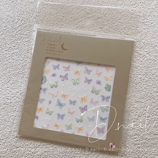 商品到着後レビューを書いて次回使える200円OFFクーポンGET!!ホログラムのようにキラキラと輝くバタフライのネイルシールです。 丸みのあるバタフライとパステルカラーの色合いで、かわいい仕上がりになります。 薄くて強い粘着力で、埋め込みやすい高品質素材。 1枚130×80mm D.nail ネイルシール パステルバタフライ 1,044 ~