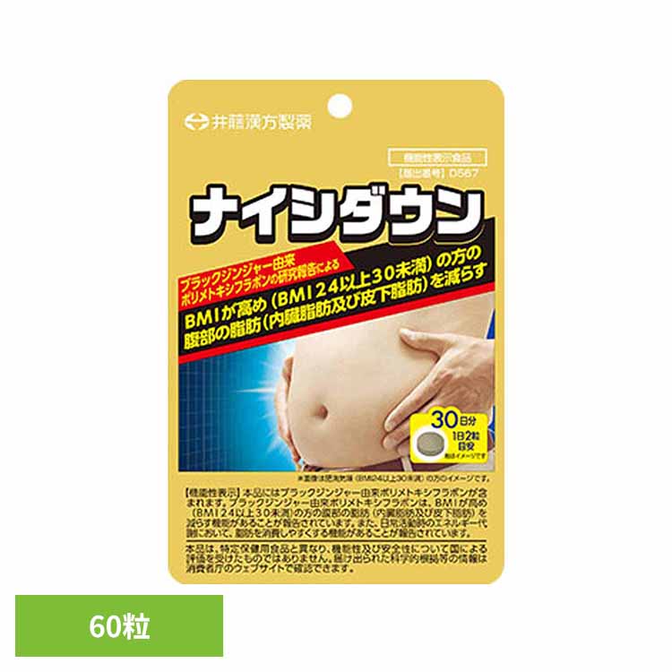 ナイシダウン 60粒 サプリ 機能性表示食品 ブラックジンジャー おなかの脂肪 内臓脂肪 皮下脂肪 ポリメトキシフラボン BMI