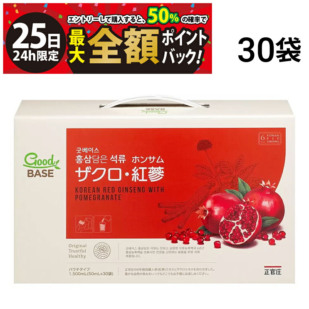 正官庄 ザクロ 紅参 ホンサム 50ml【 4袋 】まとめ買いセットです。 栄養価に優れて美容・健康に良いスーパーフードであるザクロと疲労回復など様々な効果があるといわれている高麗人参の エキスがあわさった飲みやすい手軽にのめるパウチタイプです。 健康と美容のサポートに、おいしく続ける健康習慣におすすめです。 6年根高麗紅蔘エキス、ザクロエキスを配合した健康食品(清涼飲料水)です。 ザクロのフルーティーな味わいをお楽しみいただけます。 程よい酸味で高麗人蔘特有の苦みが抑えられていて飲みやすく、特に女性に好まれています。 ノンカフェインで、身体にやさしいドリンクです。 ザクロ・紅蔘(ホンサム)は、韓国を代表する有名ブランド、正官庄(ジョンガンジャン)の製品で、 契約栽培で6年育てた高麗人蔘を、皮ごと蒸して乾燥させて作る紅蔘(ホンサム)を使用しています。 セット内容 正官庄 ザクロ 紅参 ホンサム 50ml ×4袋 商品の説明 ・1日あたり1袋目安 ・6年根高麗紅蔘、ザクロエキス配合 ・すっきりとした味わいで飲みやすい ・程よい酸味ですっきり飲みやすい ・1日のはじまりや運動の後にも◎ 注意事項 ※お召し上がりの際にはお手元の商品パッケージの表示内容を必ずご確認ください。 ※商品のリニューアル等により、お手元に届いた商品と原材料や内容量が異なる場合があります。 ※直射日光、高温多湿を避けて常温で保存してください。 ※開封後はお早めにお召し上がりください。 内容成分が袋内に沈殿する場合がありますが品質には問題ありません。 ※よく振ってからお飲みください。 ※体調によりまれにからだに合わない場合があります。 その場合は、ご使用をおやめください。 ※妊娠・授乳中の方、及び薬剤を処方されている方は、念のため医師にご相談ください。 カテゴリー 健康食品・栄養補助食品 飲料 健康飲料 【1/25限定!50%で最大全額ポイントバック】【 送料無料 】 正官庄 ザクロ 紅参 ホンサム 50ml パウチ 4袋 まとめ買い 1,000 ~