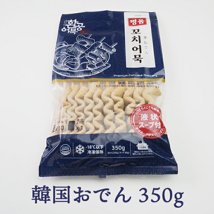 【名称】さつまあげ 【原材料名】 ●さつま揚げ:魚すり身(太刀魚、スケソウダラ、石鯛、イワシ、イシモチ)、小麦粉、食塩、大豆油/増粘剤(タピオカ澱粉)、甘味料(D-キシロース、ステビア)、調味料(アミノ酸等)、酸味料、保存料(ソルビン酸カリウム)、(一部に小麦・大豆を含む) ●液状スープ:醤油、塩、砂糖、味香(水、果糖、ぶどう糖、レモン酢、麦芽エキス、酵母抽出物)、かつお節液、昆布エキス、イワシエキス/調味料(アミノ酸等)、酒精、スモーク香、グレープフルーツ種子抽出物、(一部に大豆・小麦を含む) 【内容量】350g(おでん320g/ソース30g) 【賞味期限】30日以上保証 【保存方法】要冷凍(-18℃以下で保存) 【栄養成分表示(100gあたり)】 熱量213.7Kcal、たんぱく質5.2g、脂質5.7g、炭水化物35.4g、食塩相当量2.02g※推定値 【調理方法】 1.水800mlと串おでんと液状スープを入れ、約7分間沸かします。 2.お好みにより、大根・長ねぎ・青唐辛子などを入れるとさらに美味しく召し上がれます。 ■本製品は「たまご・乳製品・そば・落花生・さば・カニ・えび・豚肉・もも・トマト・くるみ・鶏肉・牛肉・いか・貝類」を使用した製品と同じ製造施設で生産しています。 【注意事項】常温保管時は、賞味期限内に変質する恐れがあります。 たまに黒い点が見つかることがありますが、魚の身の一部ですので安心して召し上がりください。 【配送方法】「冷凍便」でのお届けです。 冷凍不可商品と同時ご注文の場合は、別途送料を頂戴する場合がございます。 販売者:ファイブ・イー・ライフ株式会社〒537-0024 大阪府大阪市東成区東小橋3-2-7TEL:06-6974-0055 韓国おでん串(350g・10本入)冷凍便/おでん オムク ファンゴン 惣菜 おかず グルメ お取り寄せ 韓国 1,274 ~
