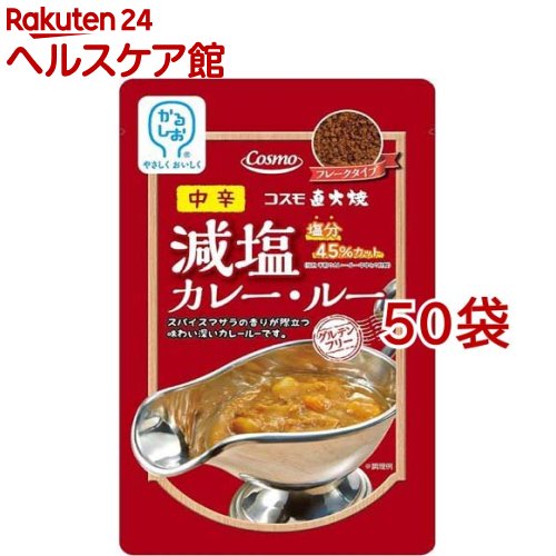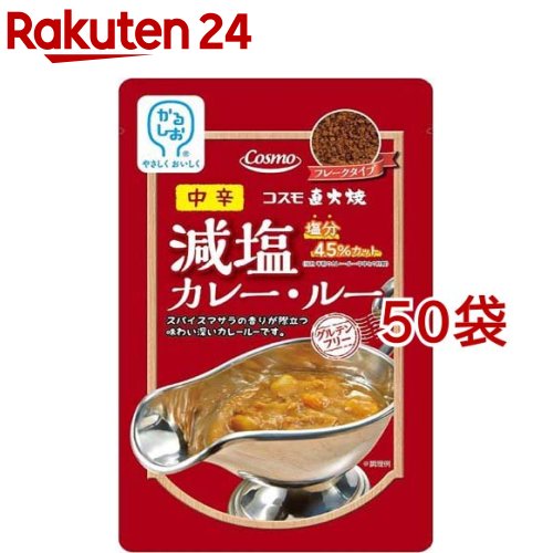 お店TOP>フード>カレー>カレールウ>カレーフレーク>コスモ 直火焼 減塩カレールー 中辛 (110g*50袋セット)【コスモ 直火焼 減塩カレールー 中辛の商品詳細】●メーカー従来品より塩分を45%カット。 ●国産米粉とひよこ豆粉を使い、直火焼製法で野菜の旨みと甘みを引き出しました。 ●スパイスマサラの香り際立つ味わい深いカレールーです。 【品名・名称】カレールー(中辛)【コスモ 直火焼 減塩カレールー 中辛の原材料】食用油脂(国内製造)、米粉、トマトペースト、カレー粉、ひよこ豆粉、ソテーオニオン、砂糖、ココナッツミルク、食塩、マンゴチャツネ、酵母エキス、チキンエキス、ポークエキス、おろし生姜、おろしにんにく、香辛料、(一部に鶏肉、豚肉を含む)【栄養成分】100g当たりエネルギー:537kcal、たんぱく質:8.7g、脂質:36.1g、炭水化物:44.2g、食塩相当量:4.9g、カリウム:540mg、リン:150mg【アレルギー物質】鶏肉、豚肉【保存方法】直射日光を避け、高温にならない所で保存してください。 【注意事項】・本品製造工場では乳成分を含む製品を生産しています。 ・本品は「グルテンフリー」を目的としており、小麦アレルギーの方に対応するものではありません。 ・この商品はカレールーです。 レトルト品ではありません。 ・本品の中にはルーだけで乾燥剤等は入っておりません。 ・開封後は冷蔵庫で保存し、お早めにご使用ください。 【原産国】日本【発売元、製造元、輸入元又は販売元】コスモ食品※説明文は単品の内容です。 リニューアルに伴い、パッケージ・内容等予告なく変更する場合がございます。 予めご了承ください。 ・単品JAN:4967306115073コスモ食品143-0016 東京都大田区大森北2-4-18 大森ビル7F0800-222-3967広告文責:楽天グループ株式会社電話:050-5577-5043[インスタント食品] コスモ 直火焼 減塩カレールー 中辛(110g*50袋セット)[コスモ ルー ルウ フレーク 減塩 カレー 米粉] 18,303 ~