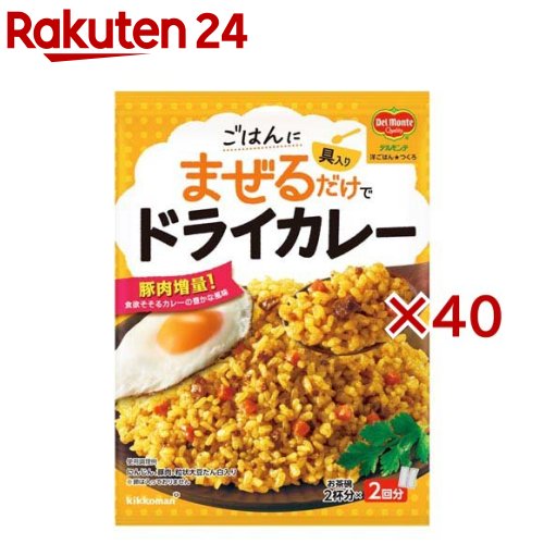 お店TOP>フード>料理の素・パスタソース>炊き込み・米料理の素>ドライカレーの素>デルモンテ 洋ごはんつくろ 洋風まぜごはんの素 ドライカレー (116g×40セット)【デルモンテ 洋ごはんつくろ 洋風まぜごはんの素 ドライカレーの商品詳細】●温かいごはんにまぜるだけ。 ●炊き込んだり、炒めたりする必要がなく、炊いたごはんにまぜるだけで、簡単に手づくり感のあるまぜごはんができる「まぜごはんの素」●自宅にある調味料ではつくりにくい、カレーの豊かな風味を楽しめる、食欲そそる1品です。 ●にんじん、豚肉の具材入りです。 ●炊きたてごはんはもちろん、残ったごはん、冷凍ごはん、市販のパックごはんなども温めて使用できます。 【品名・名称】混ぜご飯の素(ドライカレー)【デルモンテ 洋ごはんつくろ 洋風まぜごはんの素 ドライカレーの原材料】砂糖(国内製造)、野菜(にんじん、にんにく)、植物油脂、食塩、豚肉加工品(豚肉、こしょう)、カレー粉、トマトペースト、たまねぎペースト、粒状大豆たん白(小麦を含む)、しょうゆ加工品、酵母エキス、ポークエキス、しょうゆ、フルーツチャツネ(バナナを含む)、オイスターエキス、こしょう、クミン、しょうがパウダー、ローストガーリック/増粘剤(加工でん粉)【栄養成分】1人分29.0gあたり、エネルギー50kcal、たんぱく質0.8g、脂質2.7g、炭水化物5.8g、糖質5.3g、食物繊維0.5g、食塩相当量1.9g【アレルギー物質】小麦、大豆、バナナ、豚肉【保存方法】直射日光を避け常温で保存してください【発売元、製造元、輸入元又は販売元】キッコーマン食品※説明文は単品の内容です。 リニューアルに伴い、パッケージ・内容等予告なく変更する場合がございます。 予めご了承ください。 ・単品JAN:4902204004166キッコーマン食品105-8428 東京都港区西新橋2-1-10120-120-358広告文責:楽天グループ株式会社電話:050-5577-5043[インスタント食品] デルモンテ 洋ごはんつくろ 洋風まぜごはんの素 ドライカレー(116g×40セット) 9,195 ~