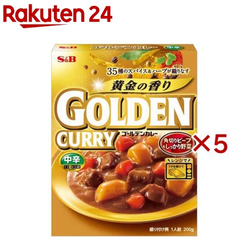 お店TOP>フード>カレー>カレーレトルト>レトルトカレー(中辛)>ゴールデンカレー レトルト 中辛 (200g×5セット)【ゴールデンカレー レトルト 中辛の商品詳細】●選び抜かれた35種のスパイス&ハーブによる黄金の香り。 ●肉や野菜の旨みがとけ込んだ、風味豊かなカレー。 【品名・名称】カレー【ゴールデンカレー レトルト 中辛の原材料】野菜(玉ねぎ(国産)、じゃがいも、人参)、ハーブ煮込み牛肉(牛肉、食塩、香辛料)、小麦粉、野菜ペースト、パーム油・なたね油混合油脂、カレー粉、砂糖、ソテー・ド・オニオン、食塩、香辛料、ビーフエキス、ウスターソース、酵母エキスパウダー、焙煎香辛料(香辛料、コーン油)、小麦発酵調味料、香辛料オイル、焙煎香辛料ペースト/調味料(アミノ酸等)、カラメル色素、加工デンプン、増粘剤(加工デンプン、増粘多糖類)、pH調整剤、塩化Ca、香料、(一部に小麦・牛肉・ごま・大豆・豚肉を含む)【栄養成分】エネルギー…150Kcal、たんぱく質…4.6g、脂質…6g、炭水化物…19.4g、食塩…2.5g【アレルギー物質】小麦・牛肉・ごま・大豆・豚肉【保存方法】直射日光を避け、常温で保存してください。 【発売元、製造元、輸入元又は販売元】エスビー食品※説明文は単品の内容です。 リニューアルに伴い、パッケージ・内容等予告なく変更する場合がございます。 予めご了承ください。 ・単品JAN:4901002159825エスビー食品174-8651 東京都板橋区宮本町38番8号0120-120-671広告文責:楽天グループ株式会社電話:050-5577-5043[インスタント食品] ゴールデンカレー レトルト 中辛(200g×5セット) 1,650 ~